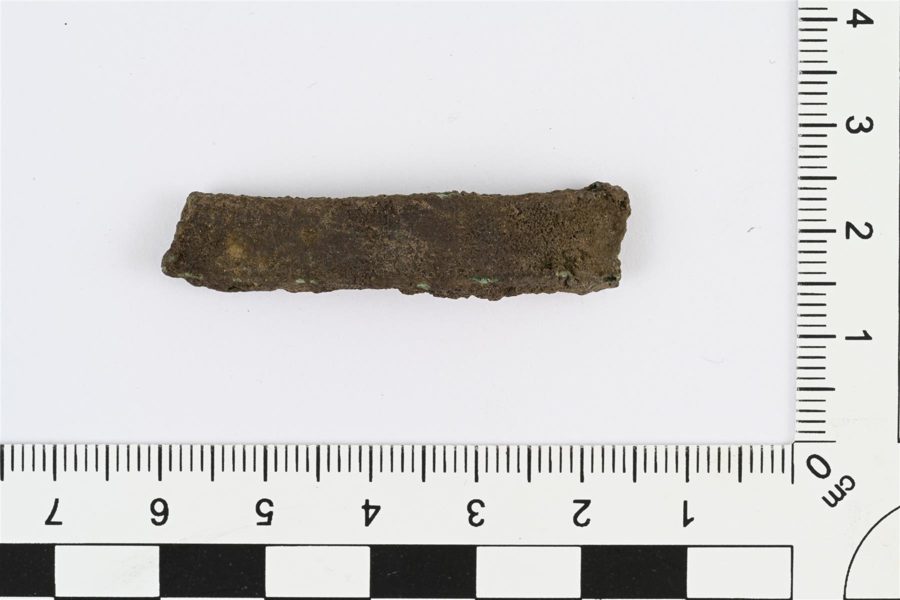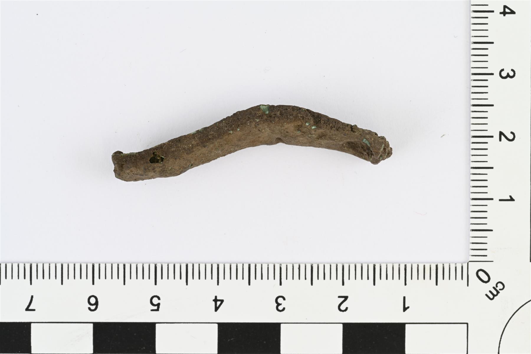 Litteähkön vartaan, luultavasti rannerenkaan katkelma. Vääntynyt, luultavasti osittain sulanut. | |