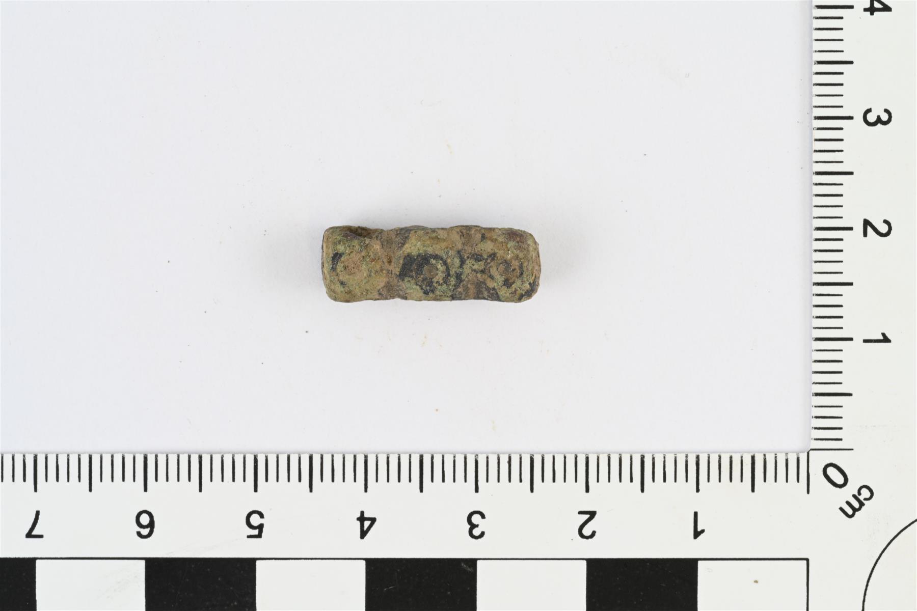 | Kolmijakoinen sarjahelmi. Poikkileikkaus neliönmuotoinen. Kaikilla sivuilla häränsilmäleimoja. | |
