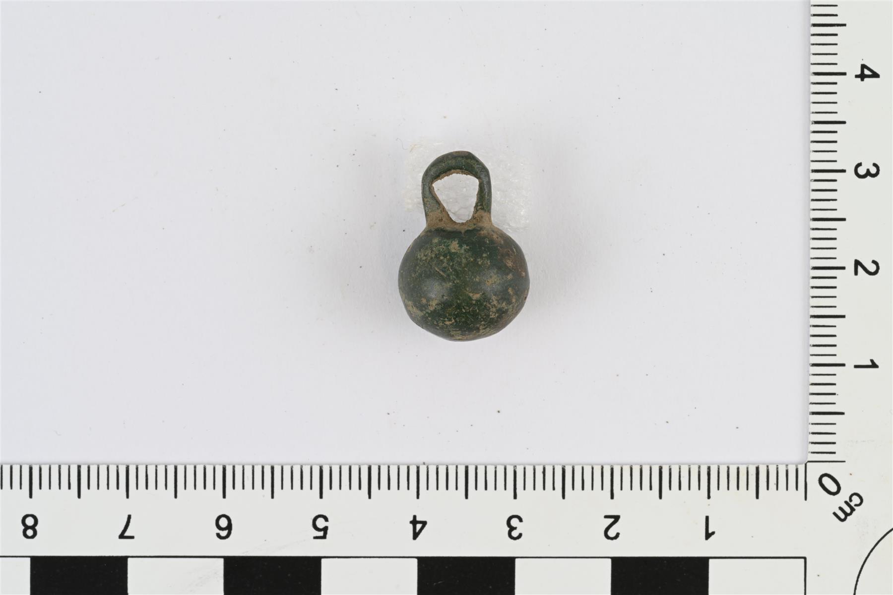 | Pallonappi. Umpinainen kupariseospallo, jossa suurehko kiinnityslenkki. Pallon halkaisija 12-13 mm. | |