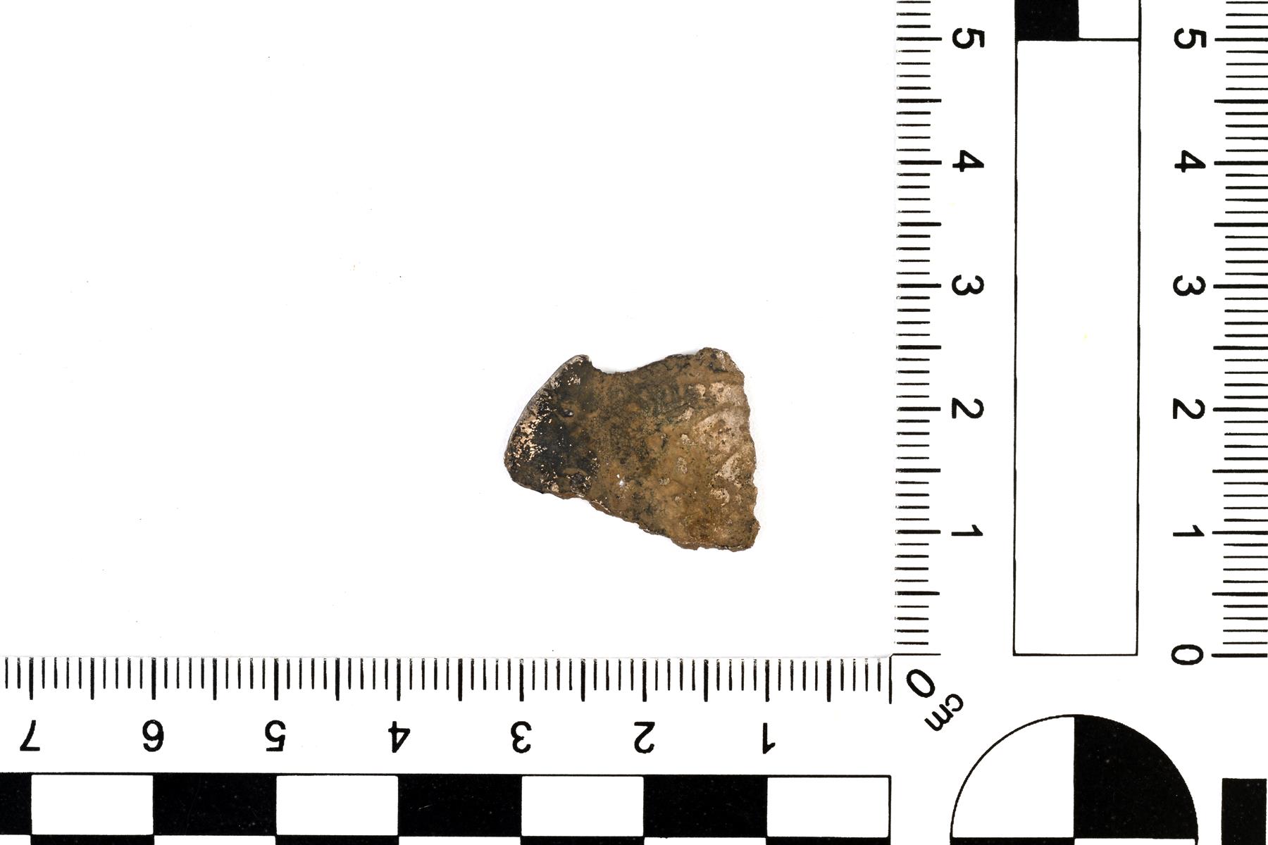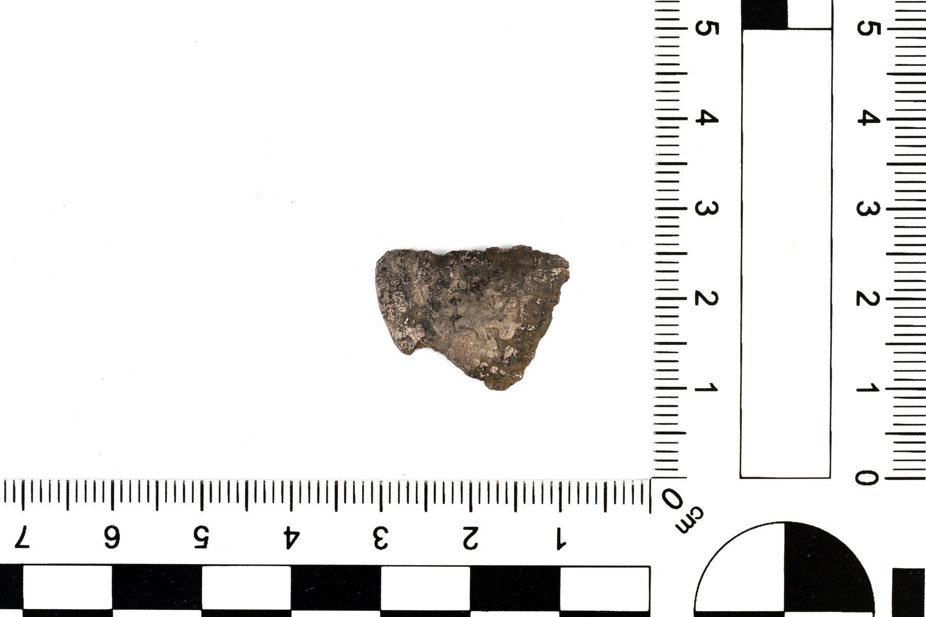 | Samanidi-dirhemin jäljitelmä, palanut fragmentti. 970-luku? (vrt. esim. Leimus 3573). | |