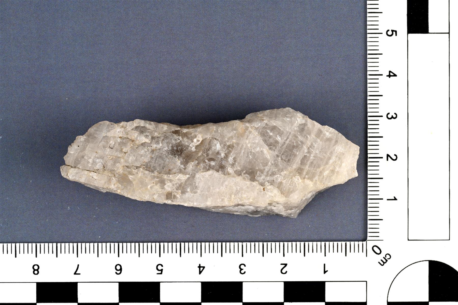 | Teräväsärmäinen kvartsi-iskos. Mahdollisesti kivenlouhinnasta. | |