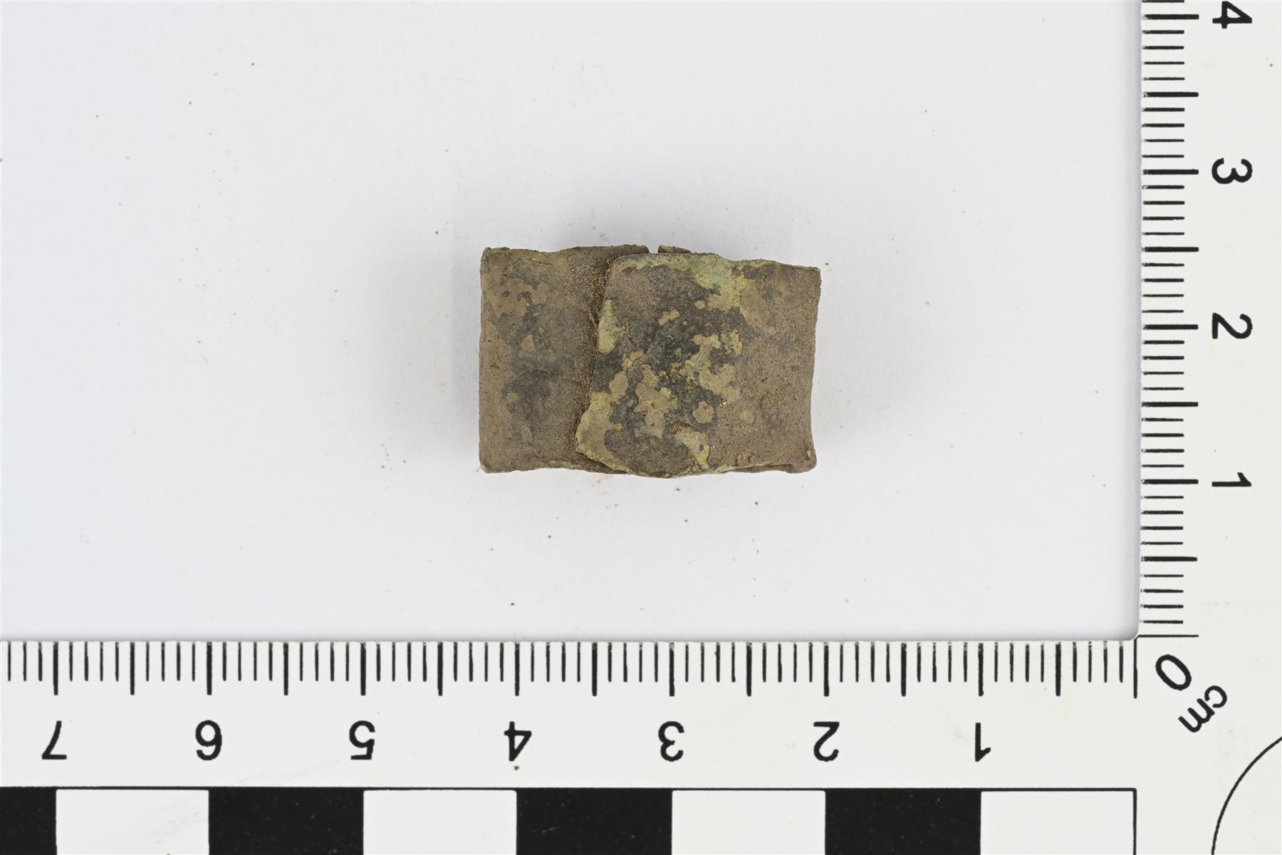 | Rullalle kierretty kupariseoslevyn suikale. Heidi Martiskainen 10.8.2023 KM45228:25_2_pronssiesine |