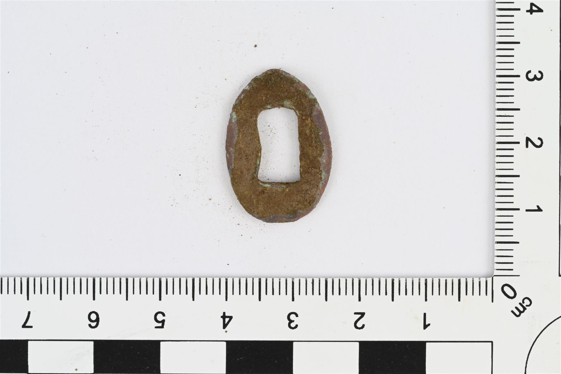 | Reiällinen kupariseoslevy. Heidi Martiskainen 10.8.2023 KM45228:26_1_pronssiesine |