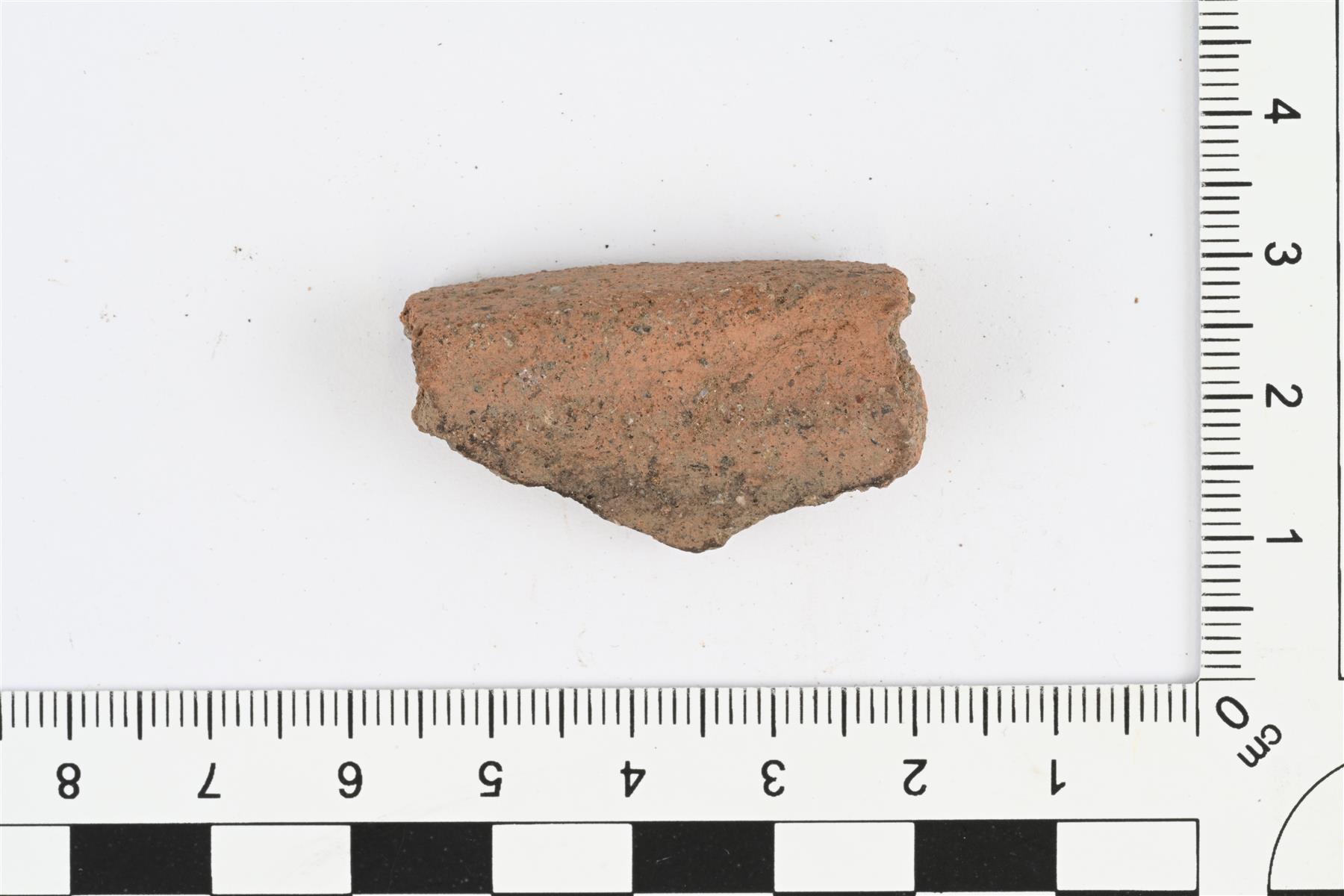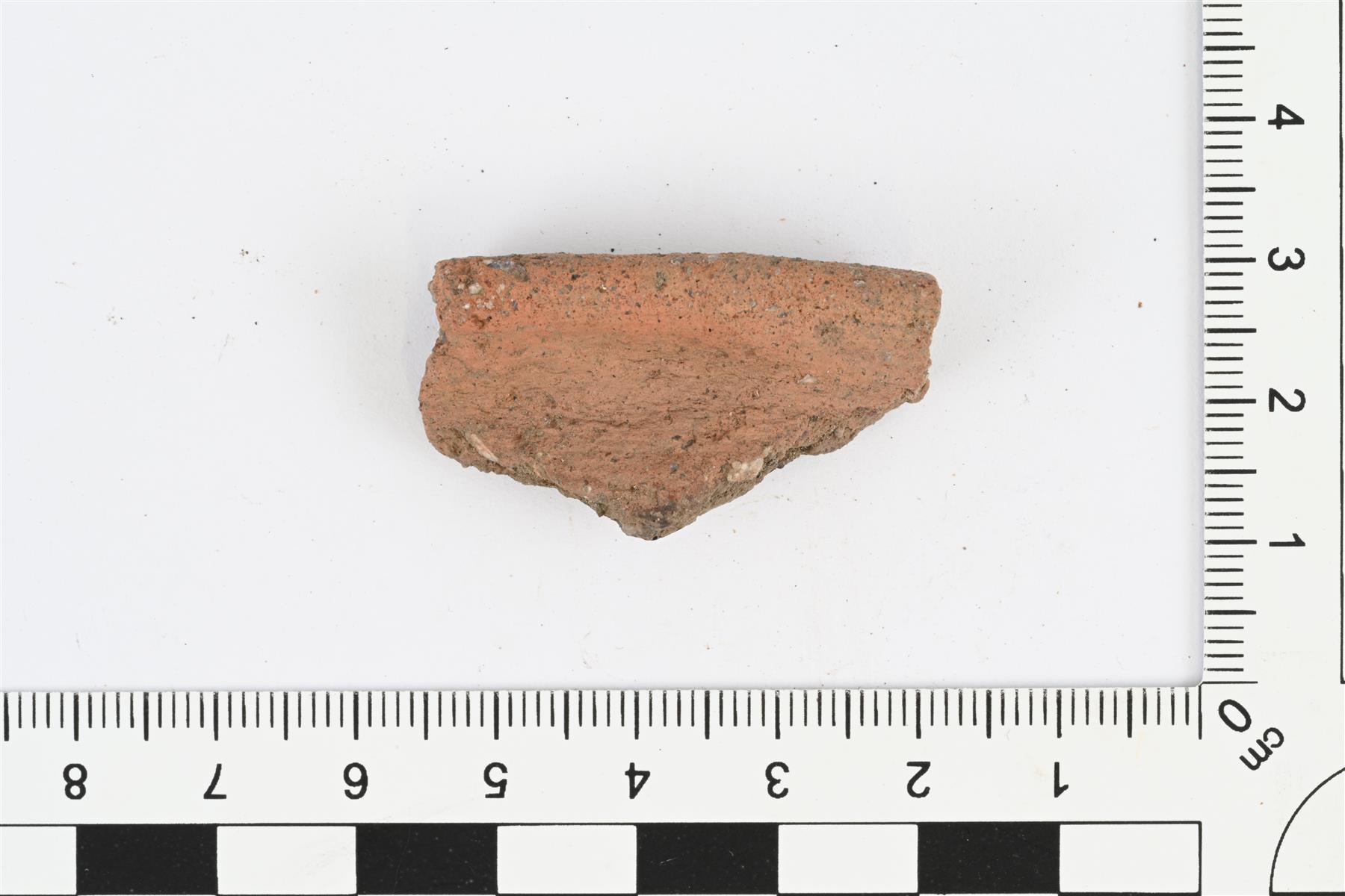 | Suureunapala. Karjalaista keramiikkaa. Reuna ulospäin taipuva, reunan ulkopinnalla voimakas paksunnos, reunan päällinen tasainen. Hiekka- tai kivimurskasekoite. Savimassan väri vaihtelee punaruskeasta harmaaseen. Reunan paksuus 12 mm, seinämän paksuus 6 mm. | |