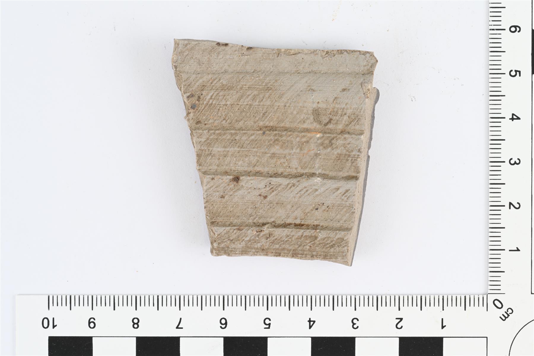 | Kylkipala. Ulkopinnalla punaruskea saviliete ja suolalasite. Savimassa sisäpinnan puolelta vaaleanharmaa ja ulkopinnan puolelta tummanharmaa. | |