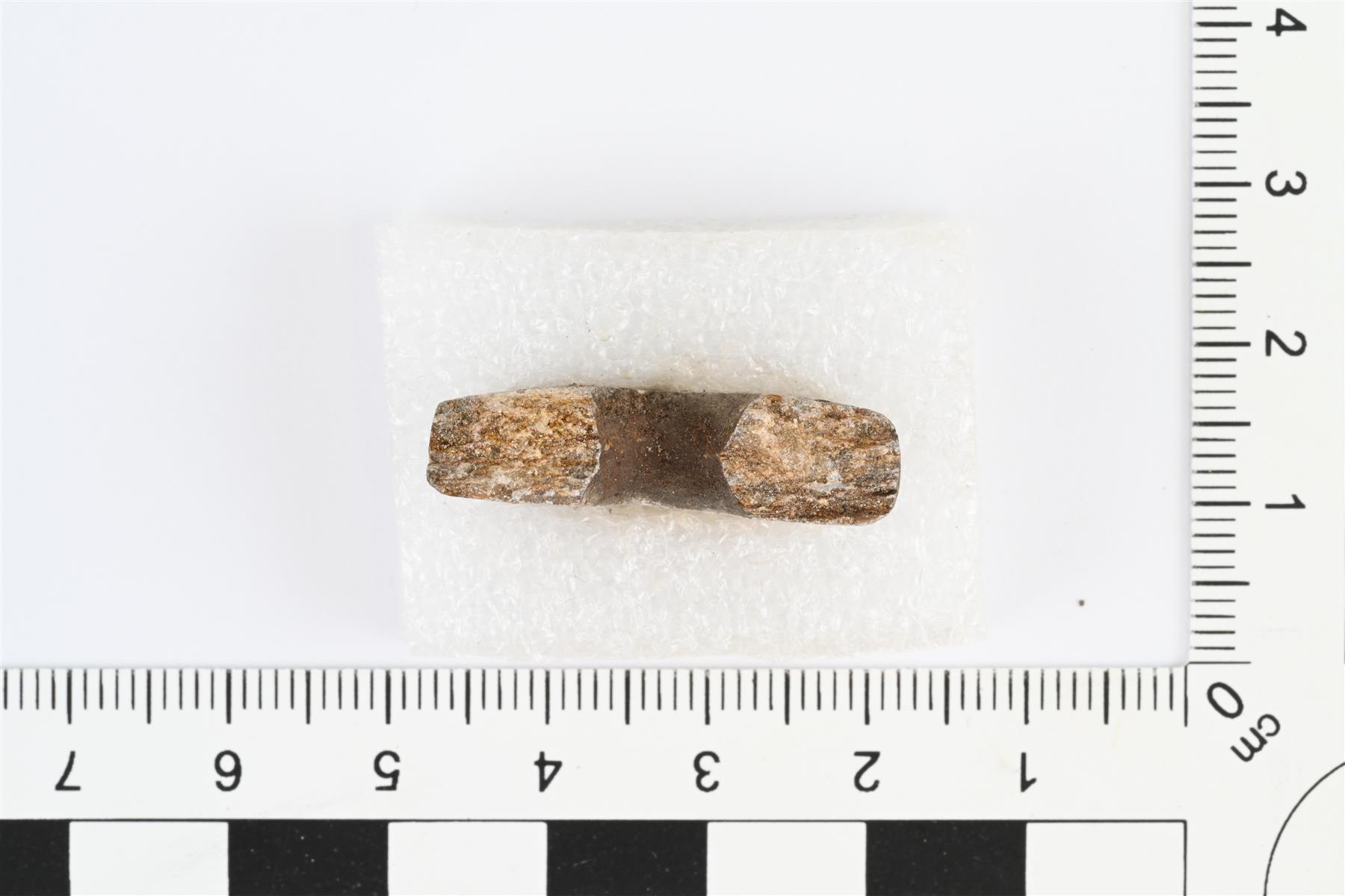 | Pienen kivisen värttinänkehrän puolikas. Muodoltaan litteä ja kiekkomainen. Reikä tehty kahdesta suunnasta ja muodoltaan tiimalasimainen. Reiän halkaisija 6,5-8,5 mm.