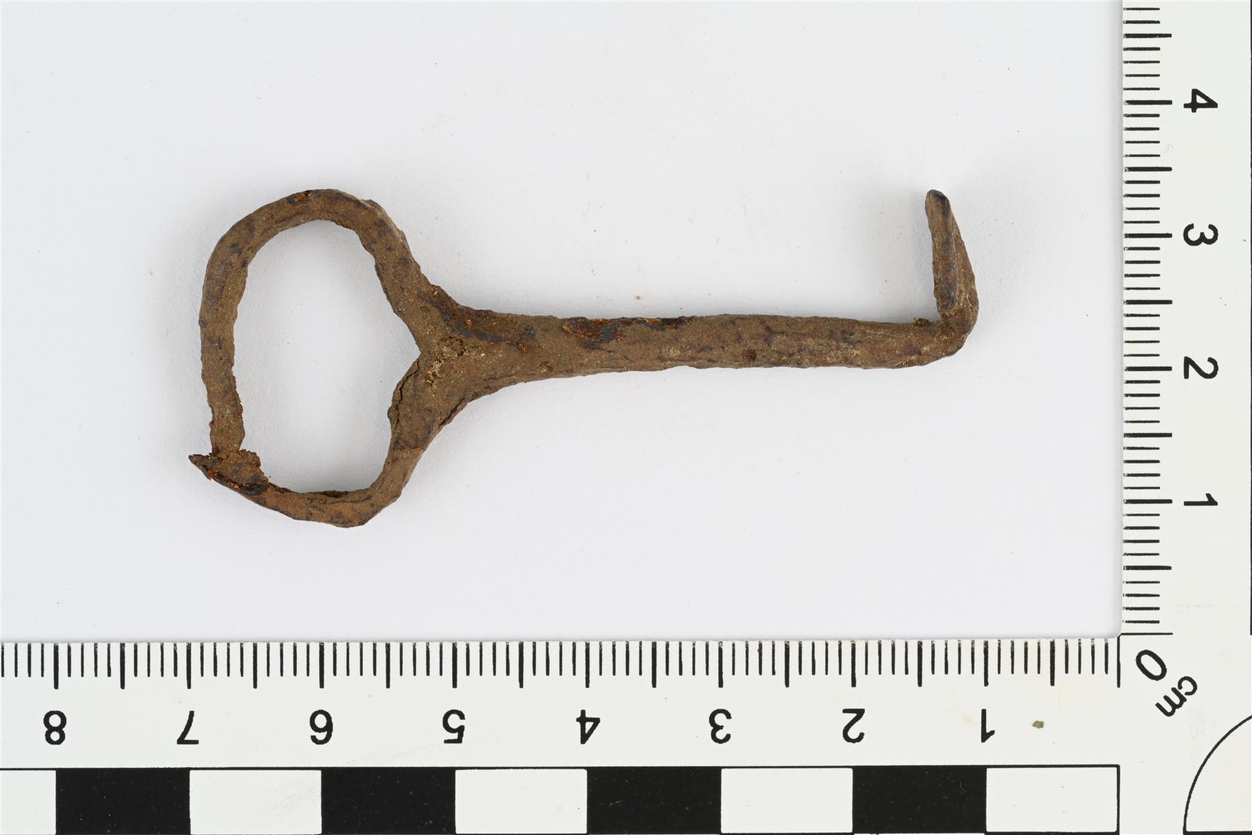 | Avain. Suora varsi, jonka toisessa päässä soikea lenkki. Varren toinen pää on levenevä, litistyvä ja lenkin suuntaisesti 90 asteen kulmaan taivutettu. | |