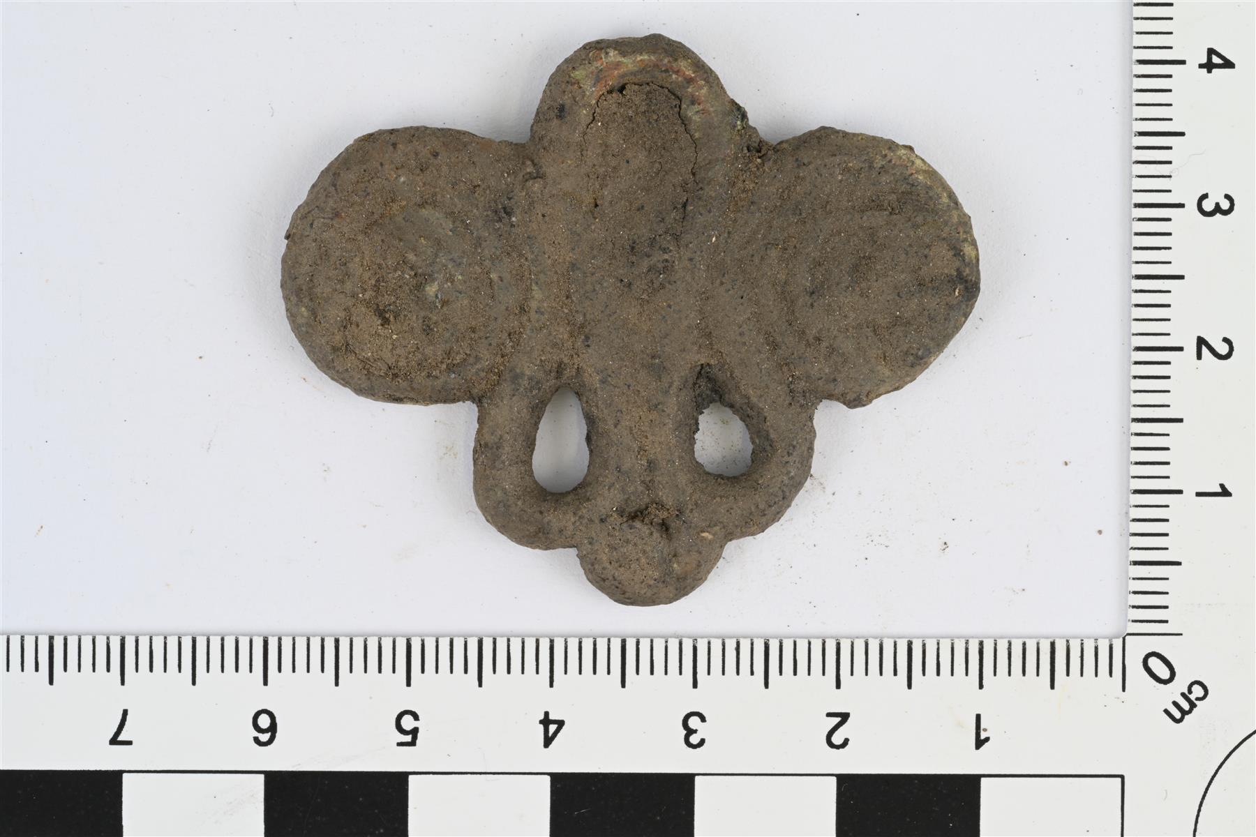 | Spiraalipäinen ketjunkantaja. Korrodoitunut, pinnassa maa-ainesta. | |