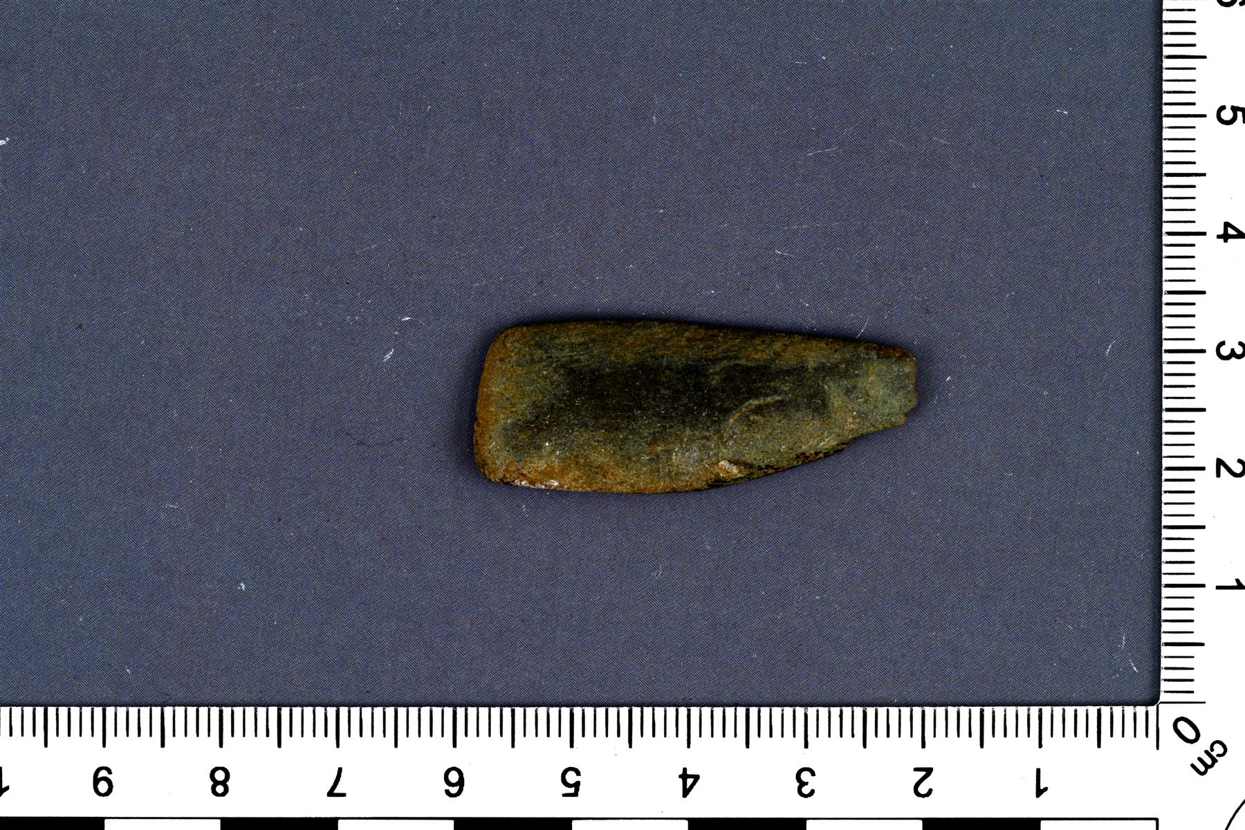 | Toiselta puolelta hiotun oloinen liuskekiven katkelma. | |
