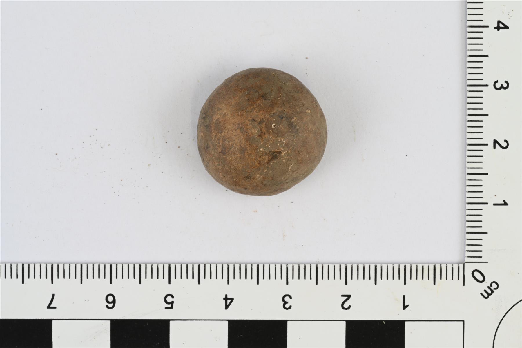 Puolipallon muotoinen lyijyesine, luultavasti punnus. | |