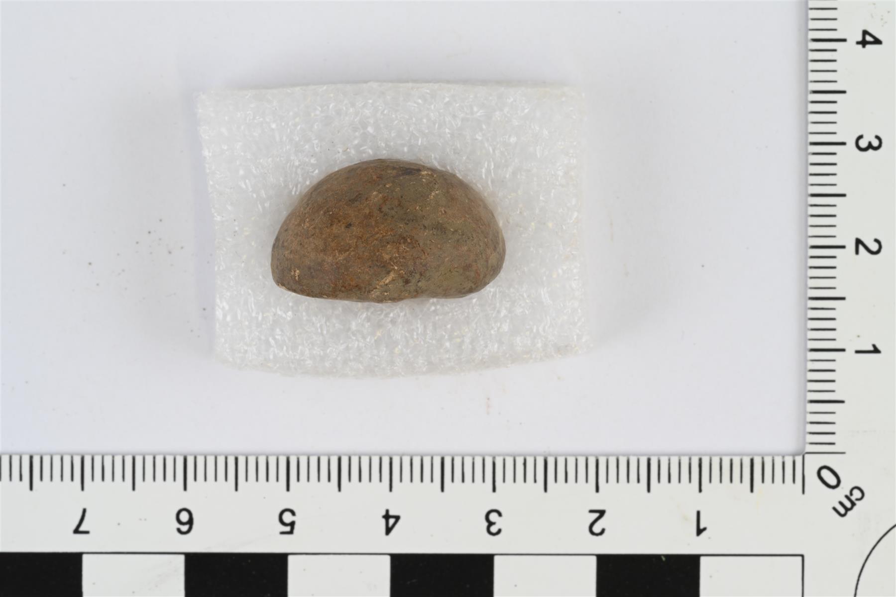 | Puolipallon muotoinen lyijyesine, luultavasti punnus. | |