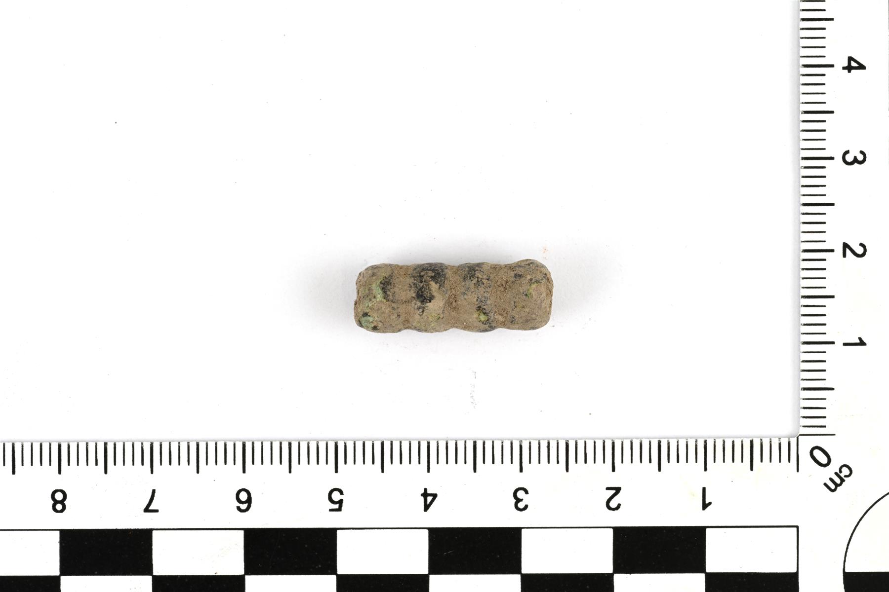 | Neljälohkoinen sarjahelmi. Lohkot ovat pyöristettyjä. Pinta on melko kulunut. | |