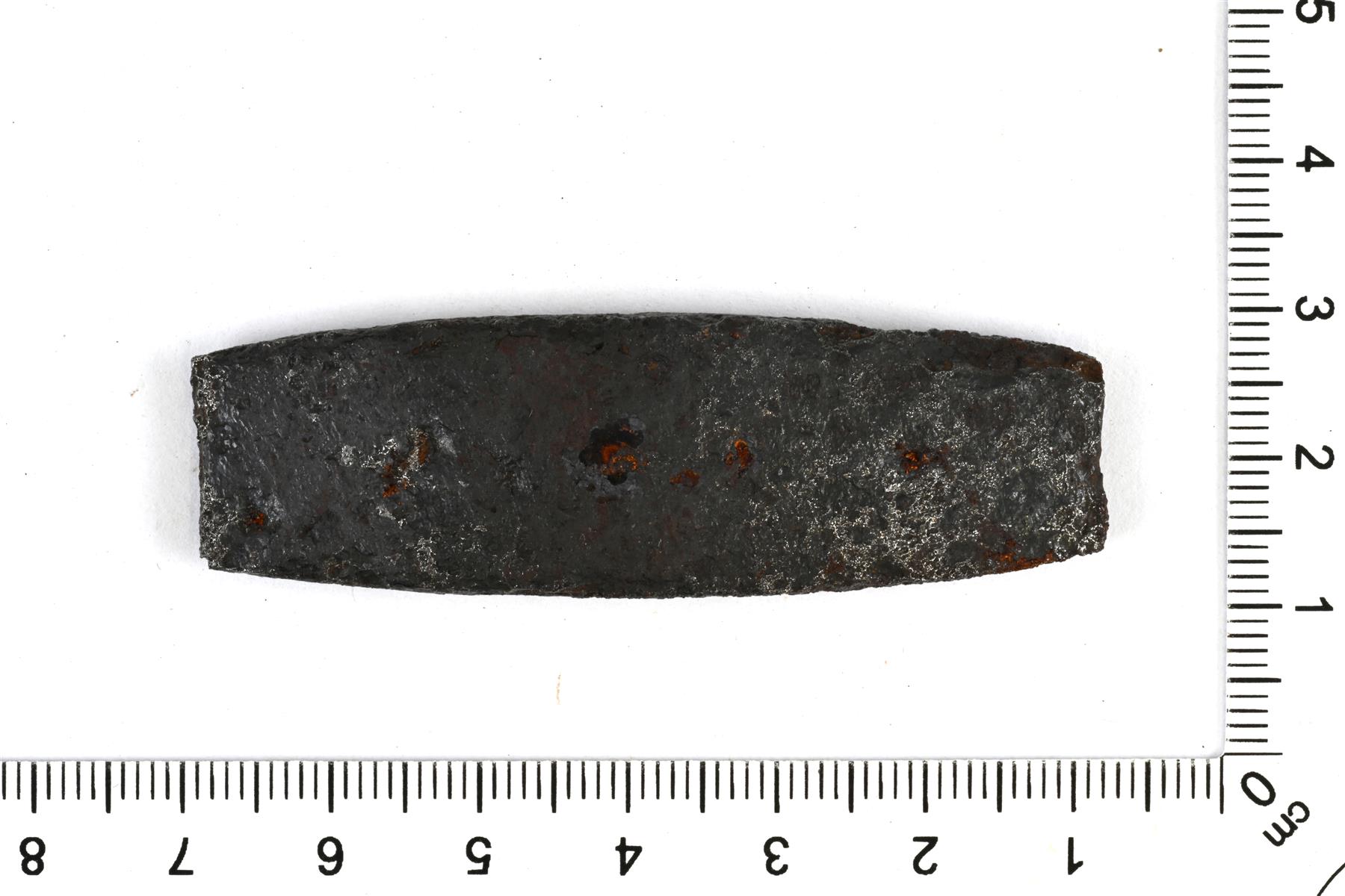| Umpinainen ja suorakaiteen muotoinen tulusrauta. Korroosio on puhdistettu. | |