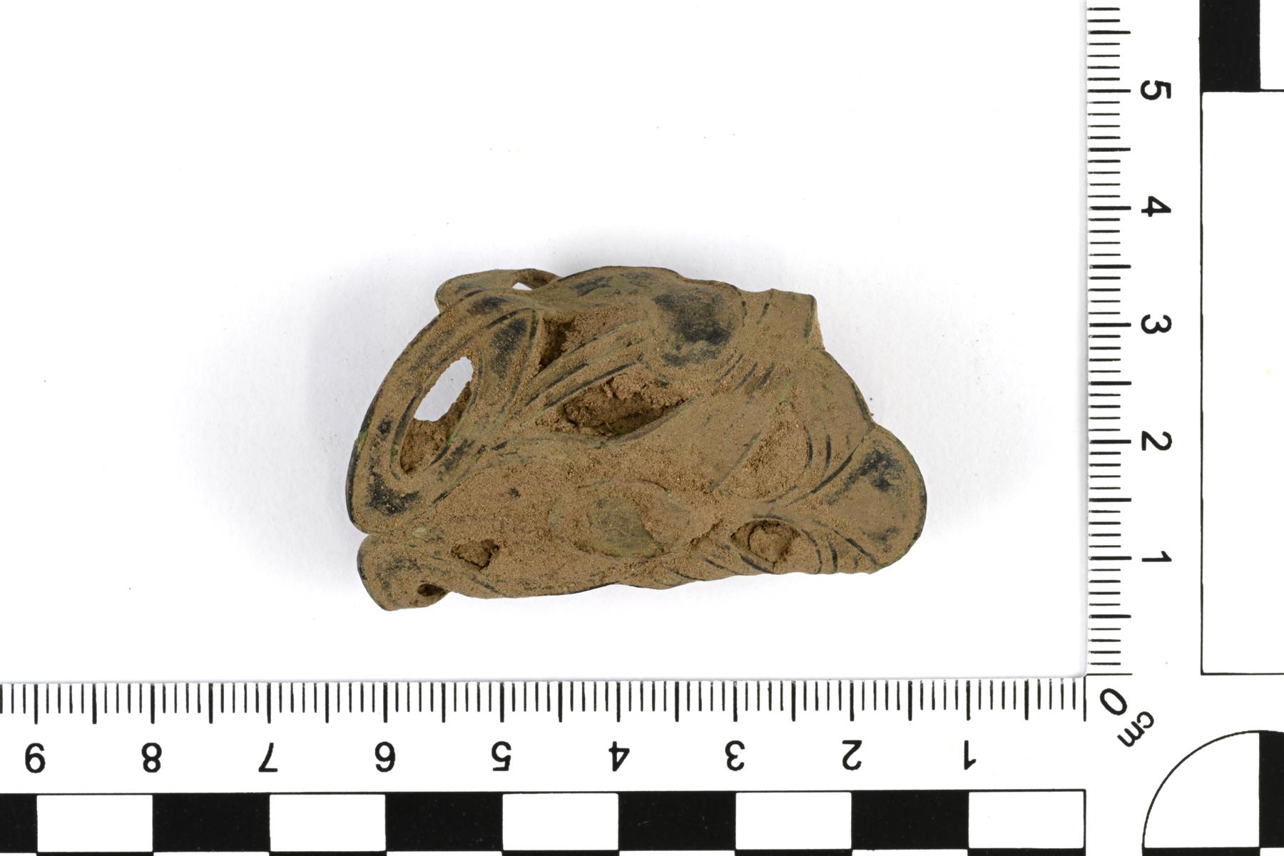 | Rullalle kierretty korusolki. Tehty ohuesta levystä, jossa on koristeena nauhaornamentiikkaa. | |