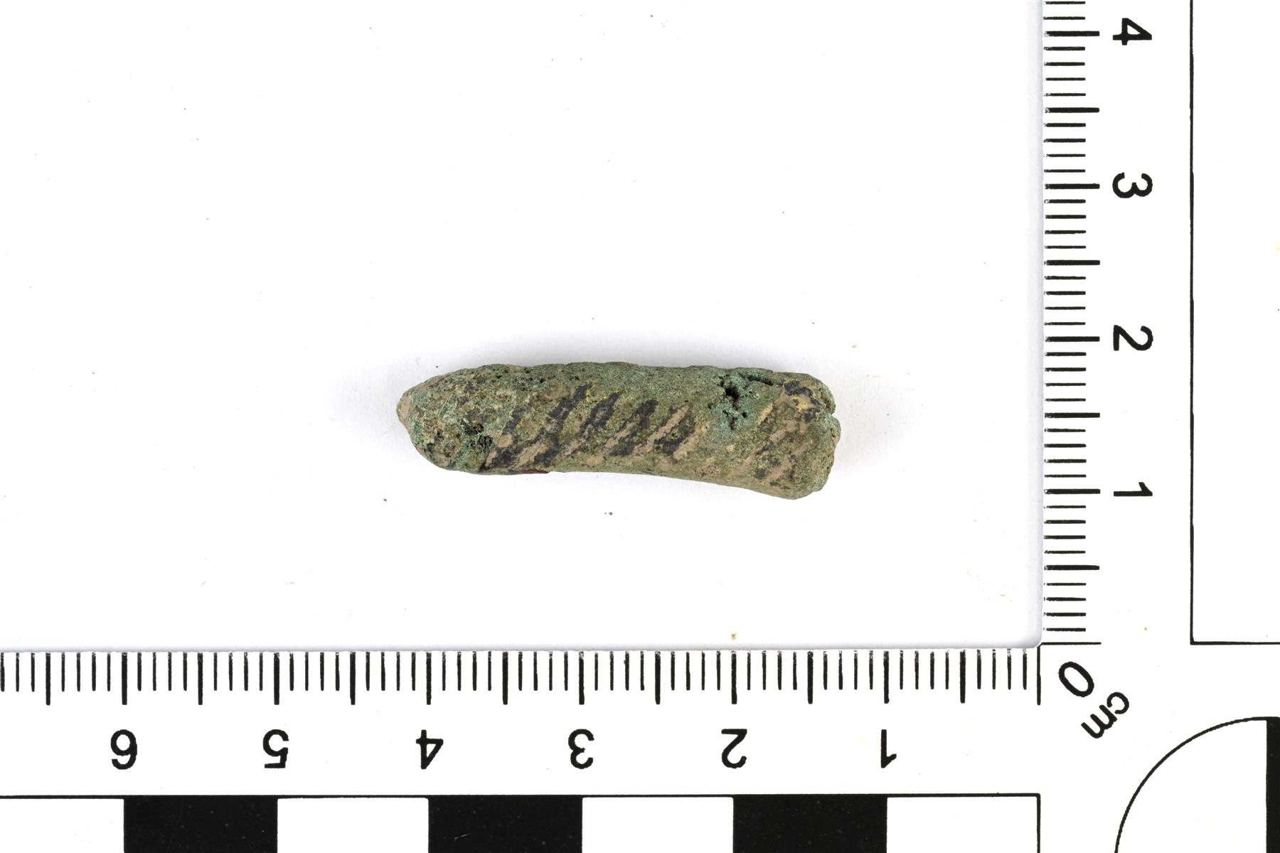| Valekierteisen kaularenkaan katkelma. Poikkileikkaus on pyöreä. Pinta on melko kulunut. | |