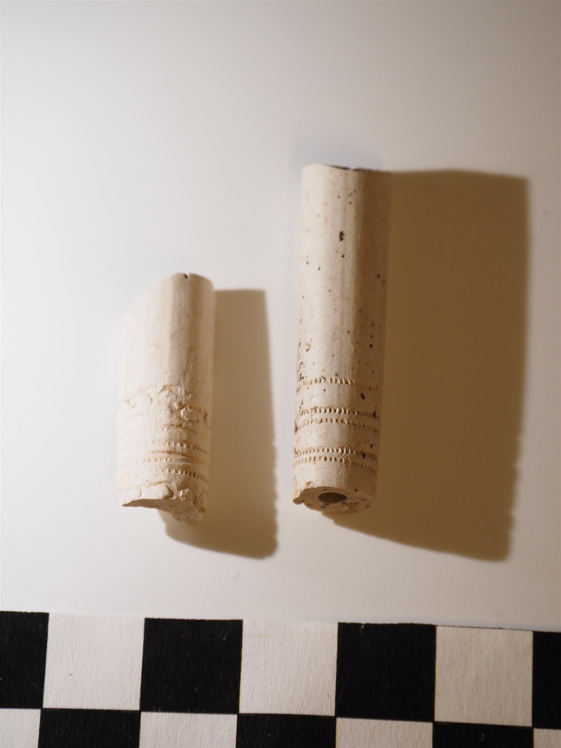 | 16 kpl liitupiippujen varsia, muutamissa nähtävissä koristelua | |