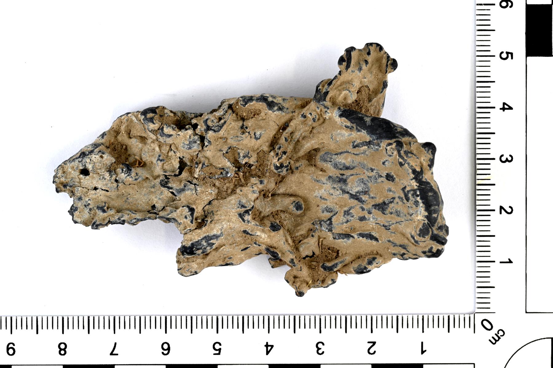 | Sulaneen kupariseoksen pala. Jussi Moisio 10.10.2023 KM45600:1_1_sulanut aines |