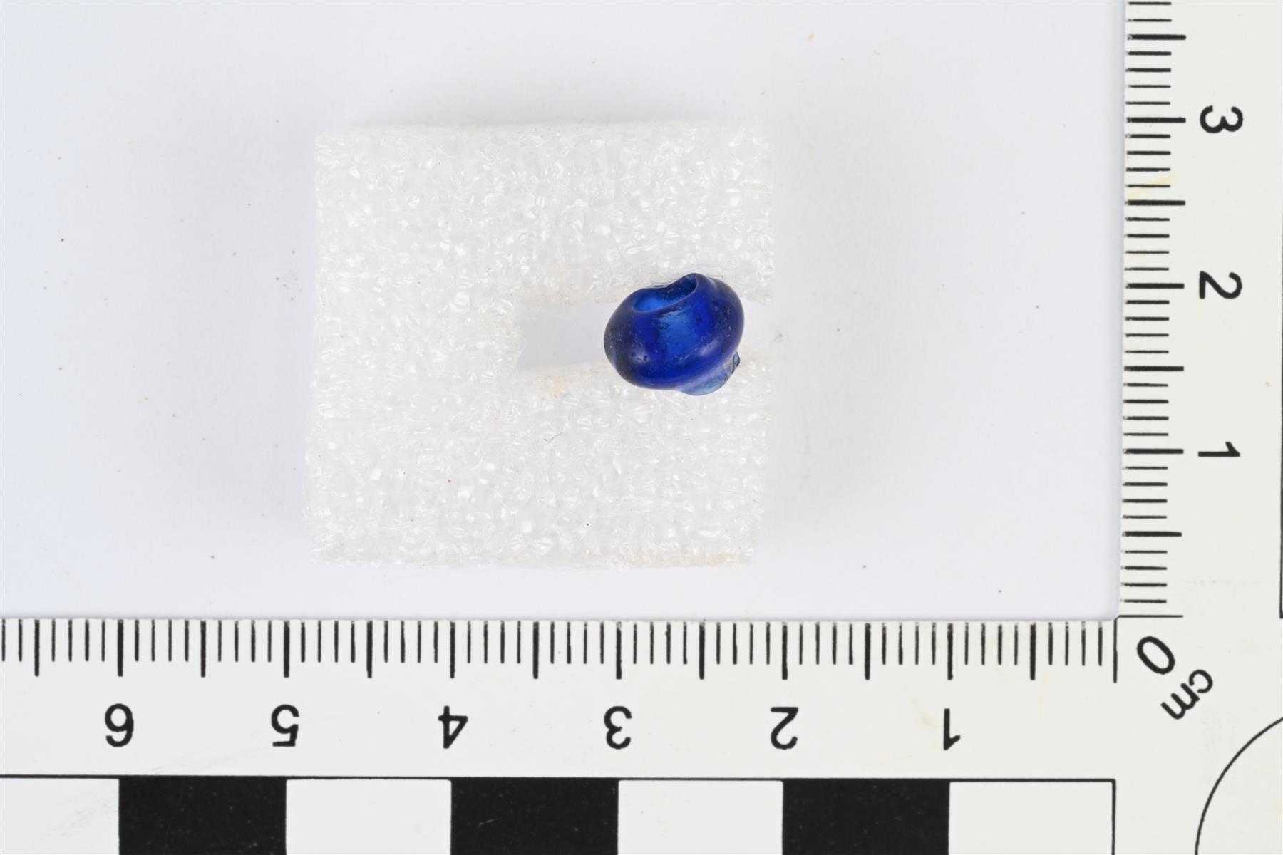 | Lasihelmi. Kuvattu sivulta. Heidi Martiskainen 12.10.2023 KM45614:2_2_lasihelmi |