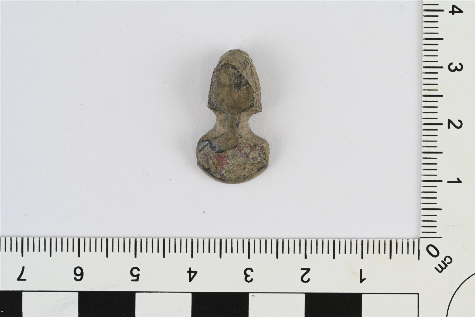 | Kupariseosesine. Kuvattu etupuolelta. Heidi Martiskainen 19.10.2023 KM45646:2_1_pronssiesine |