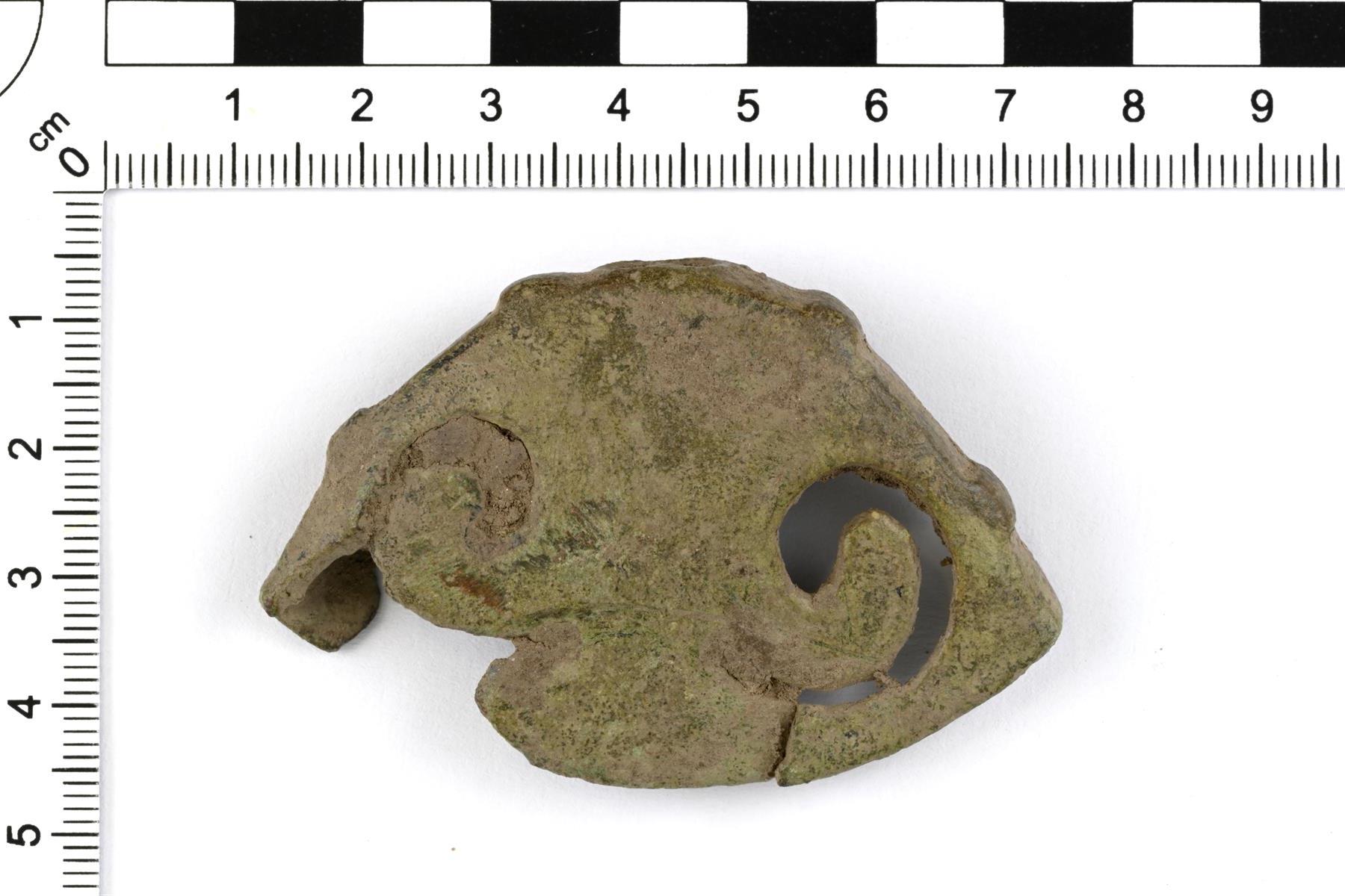 | Ontto kupariseoksinen miekanponsi. Koristeltu Ringerike-tyylillä. Keskeinen koristeaihe muistuttaa ranskanliljaa. Muutamia vastineita tiedossa Ruotsista ja Englannista (ks. Gustafson 2024).