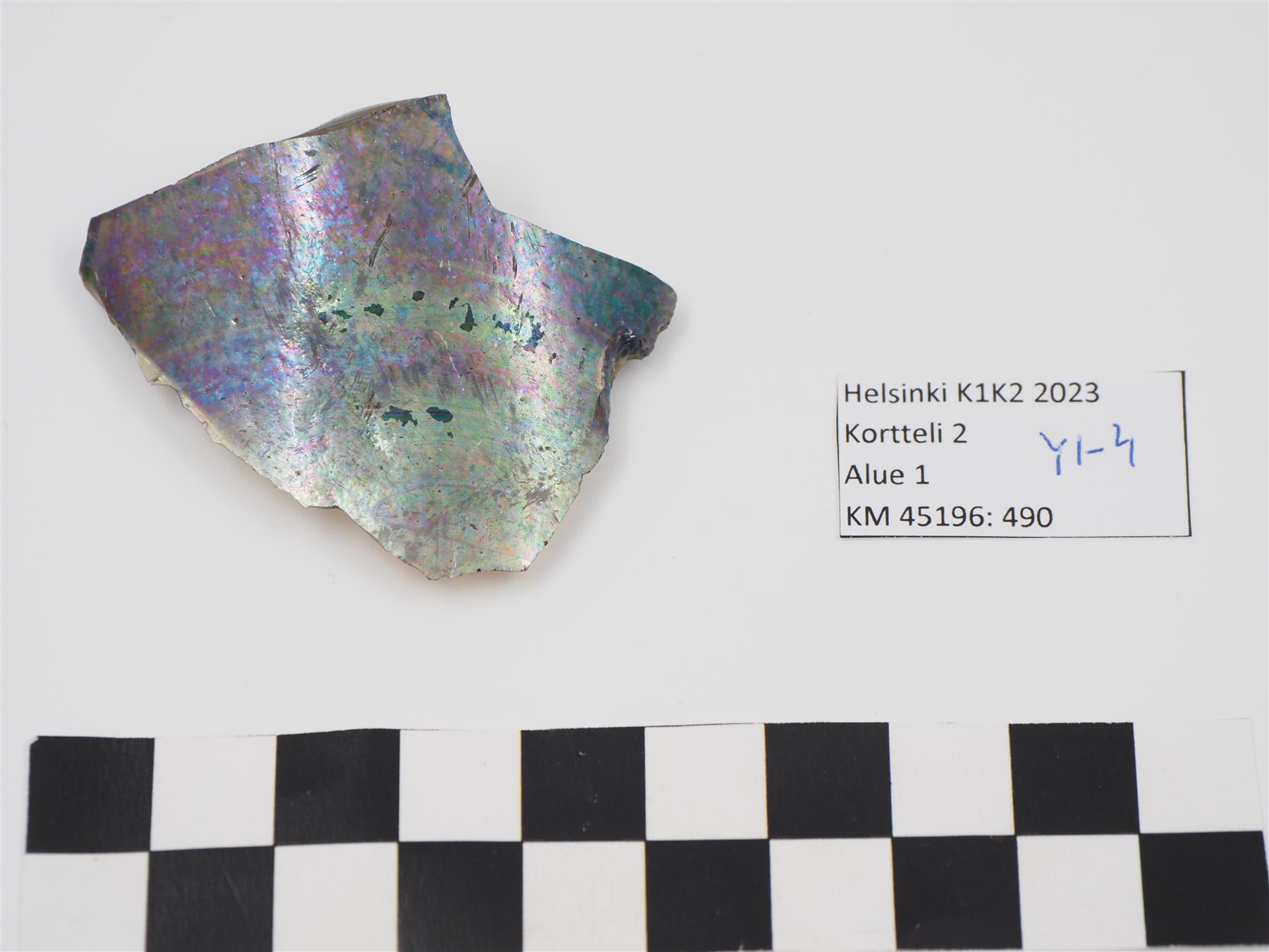 Pullolasin pala, pinta kokonaan iridisoitunut | |
