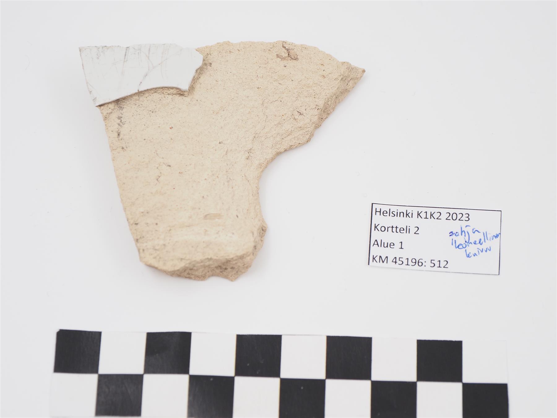 Kaakelin kappale, pinnalla jäljellä hieman tinalasitetta | |