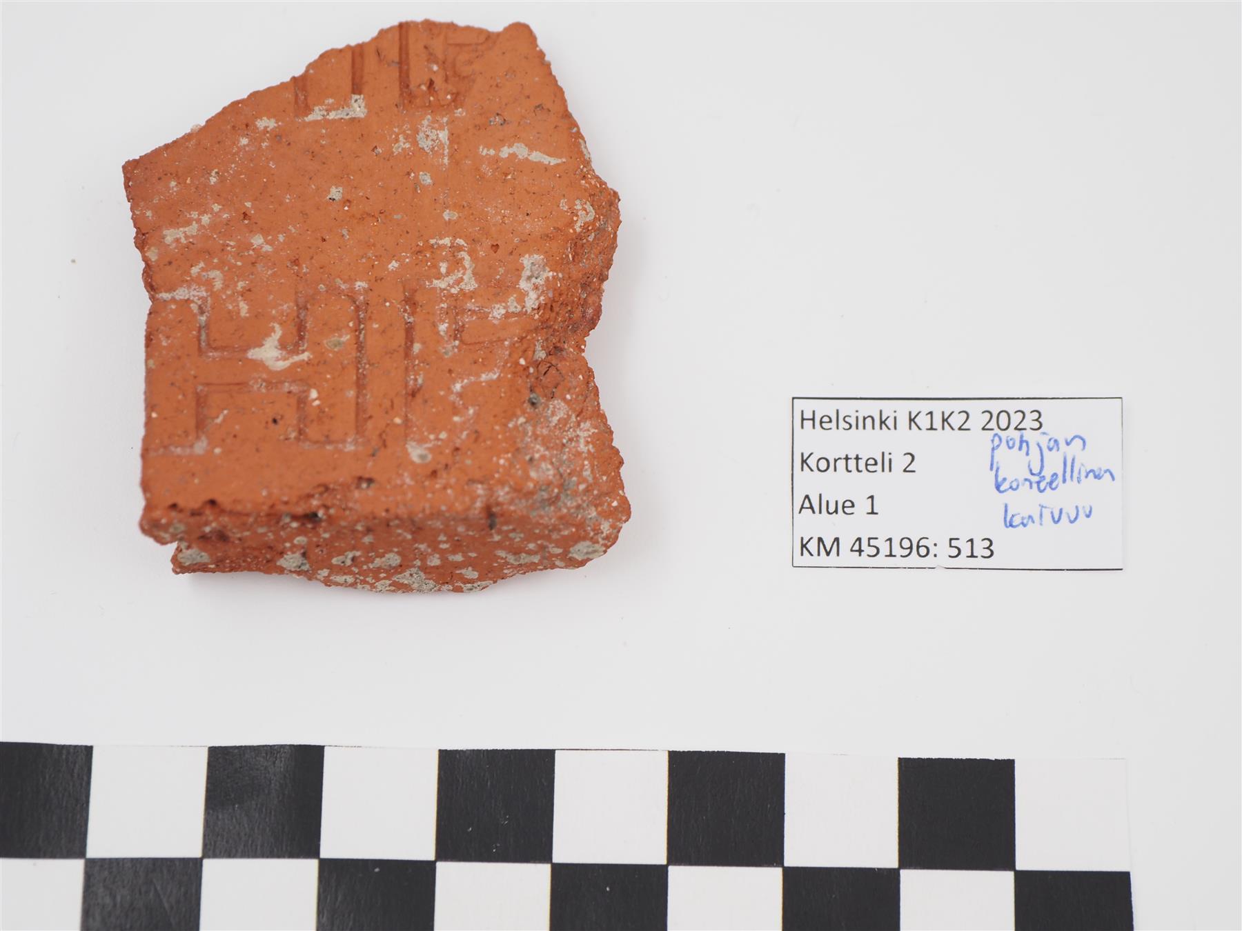 modernin punasavisen tiilen kappale, pinnalla kirjaimet HF | |