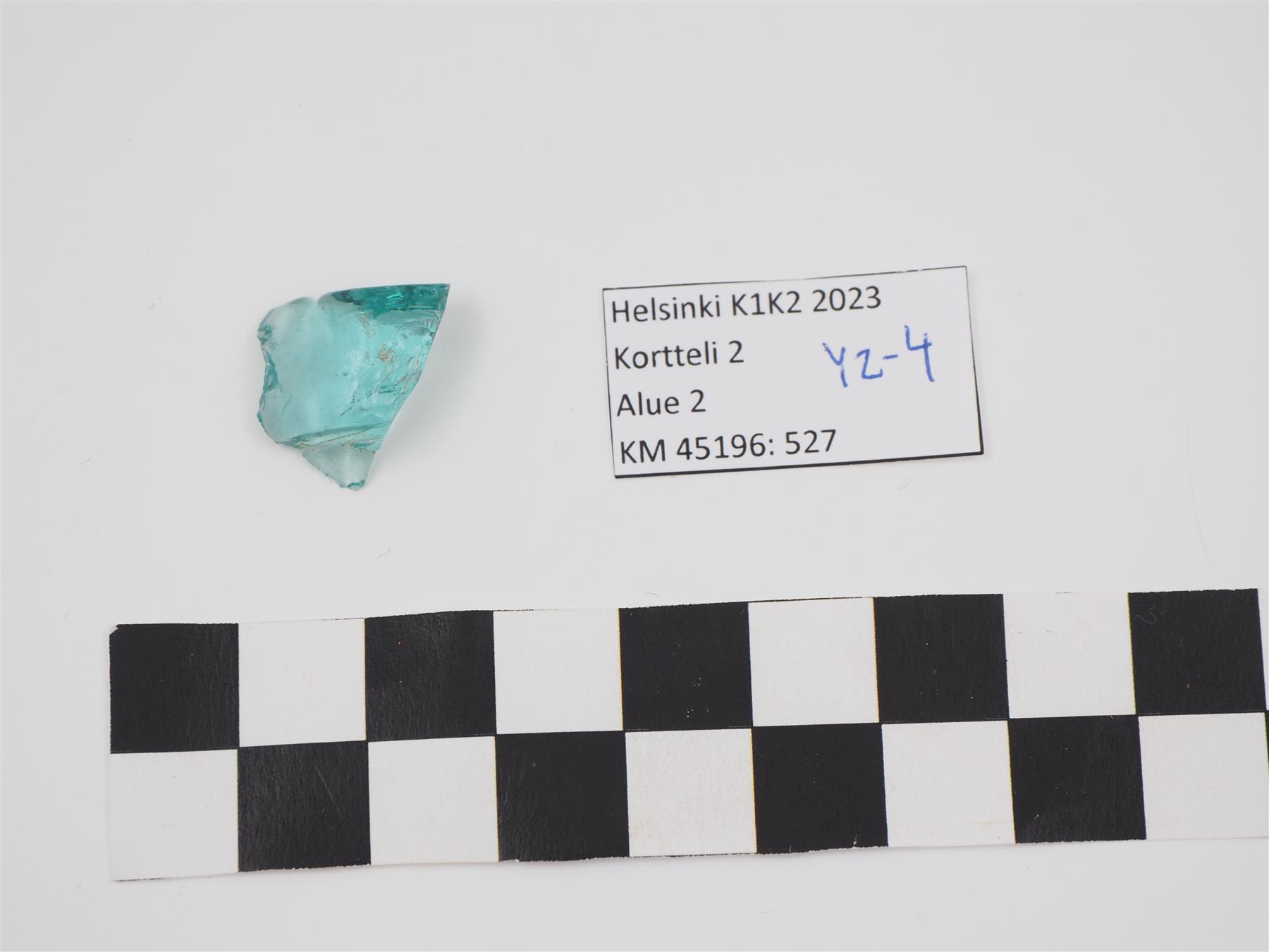 | Pieni kirkkaansinisen lasiesineen kappale | |