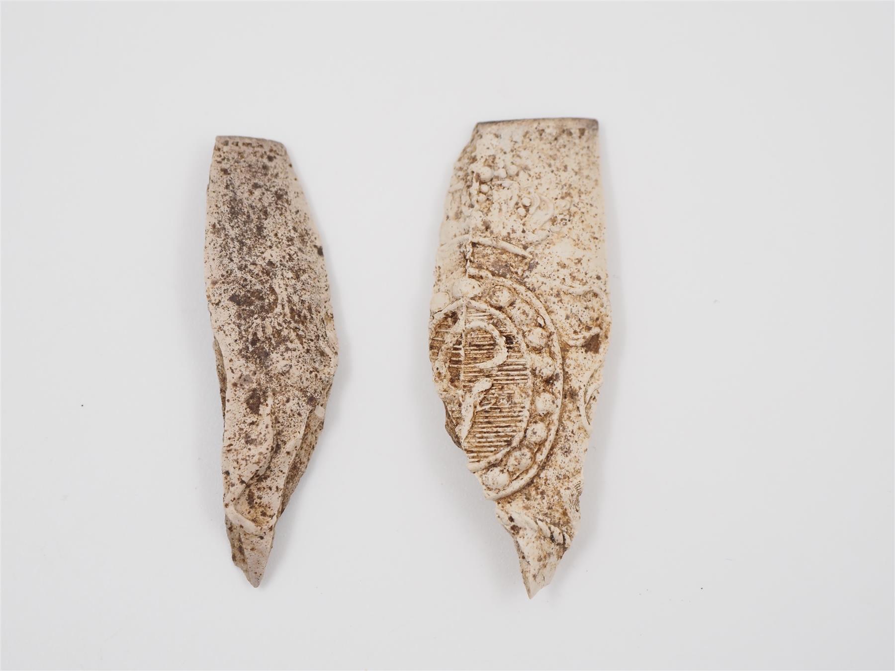 | Kaksi liitupiipun pesän takaosan kappaletta nk. Kustaa III:n vallankumouspiipusta (revolutionspipa). Ulkopinnalla nähtävissä Kuninkaan monogrammi G kohopisteistä tehdyn ympyrän sisällä. Ympyrän sivuilla leijonat sekä yläpuolella kruunu.