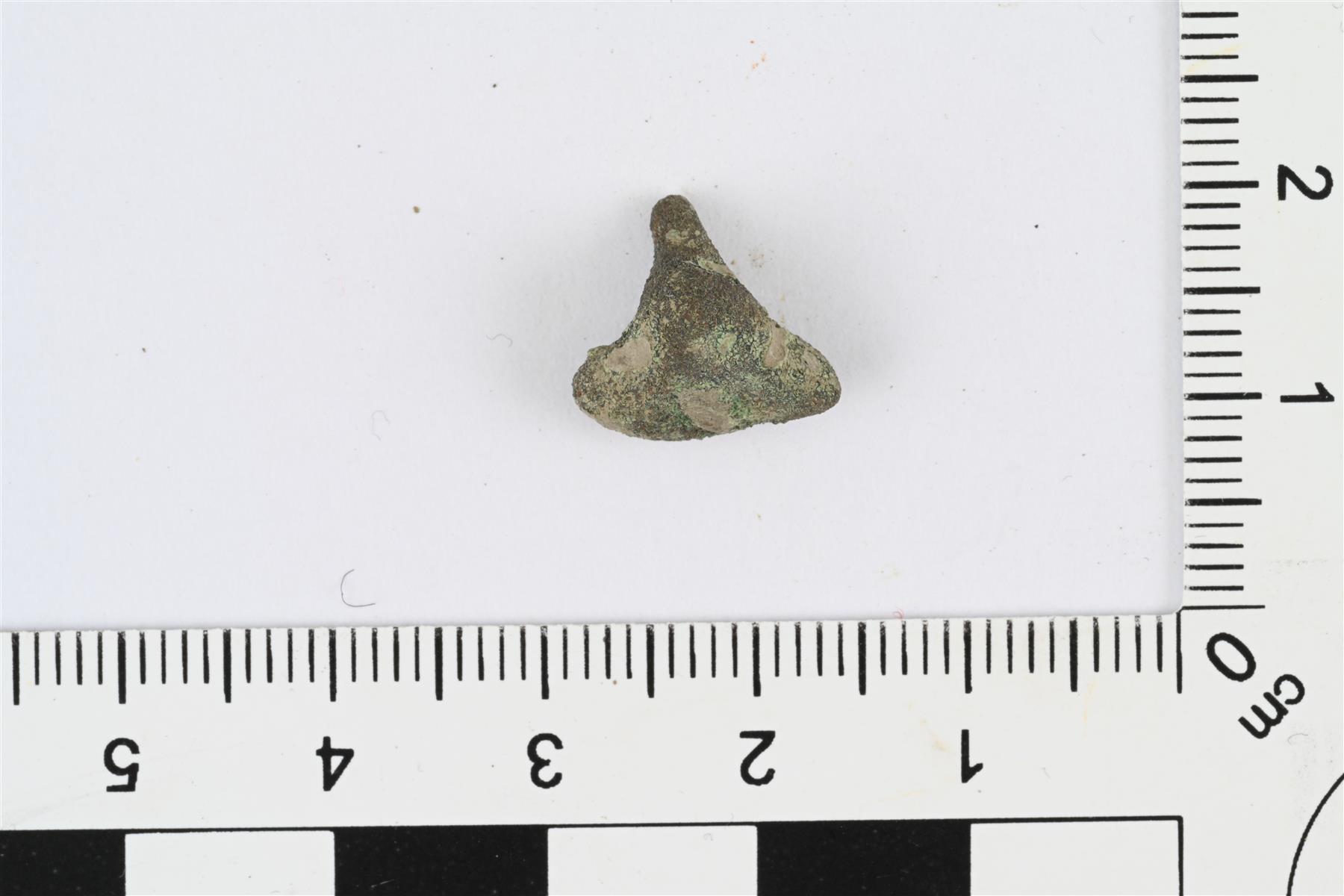 Sulanutta kupariseosta. Mahdollisesti sulanut esineen katkelma. | |