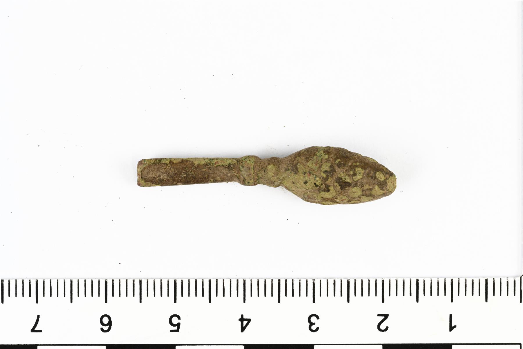 | Käpylusikan pään katkelma. Varsi on ohut ja päässä on kävynmuotoinen nuppi. | |