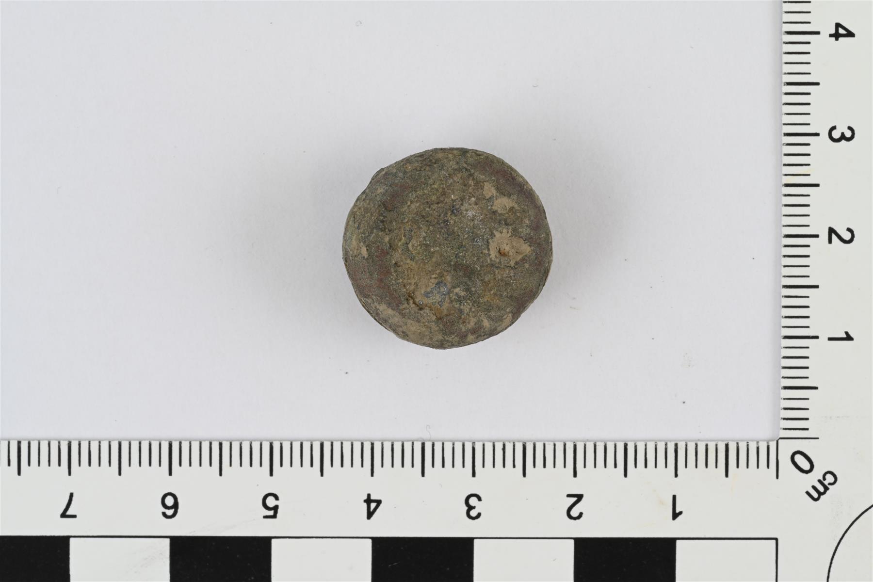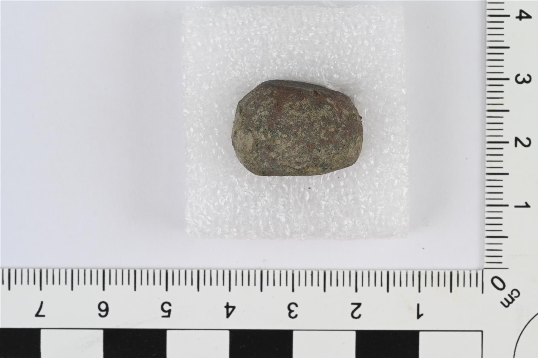| Kuulamainen punnus. Toinen puoli kulunut laajalta alalta tasaiseksi. | |