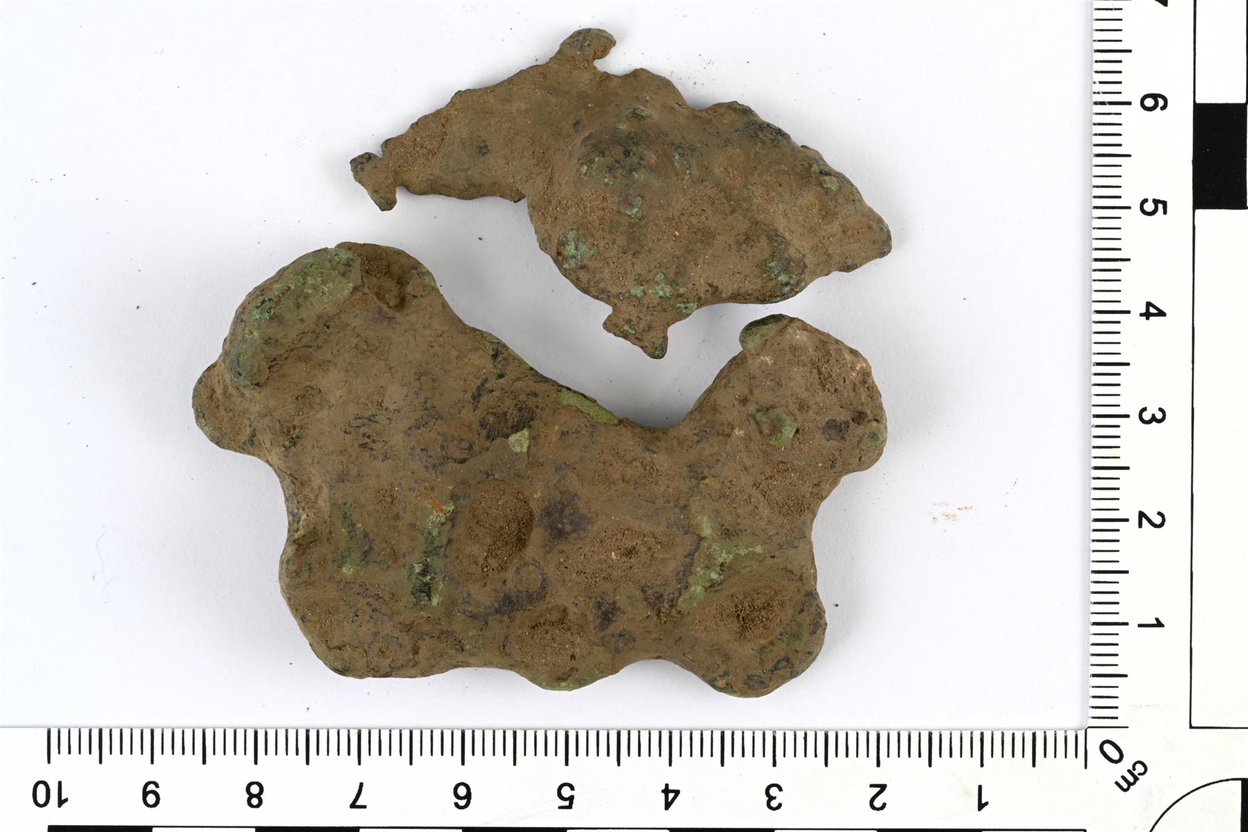 | Muodottomaksi sulaneen kupariseoksen paloja. | |