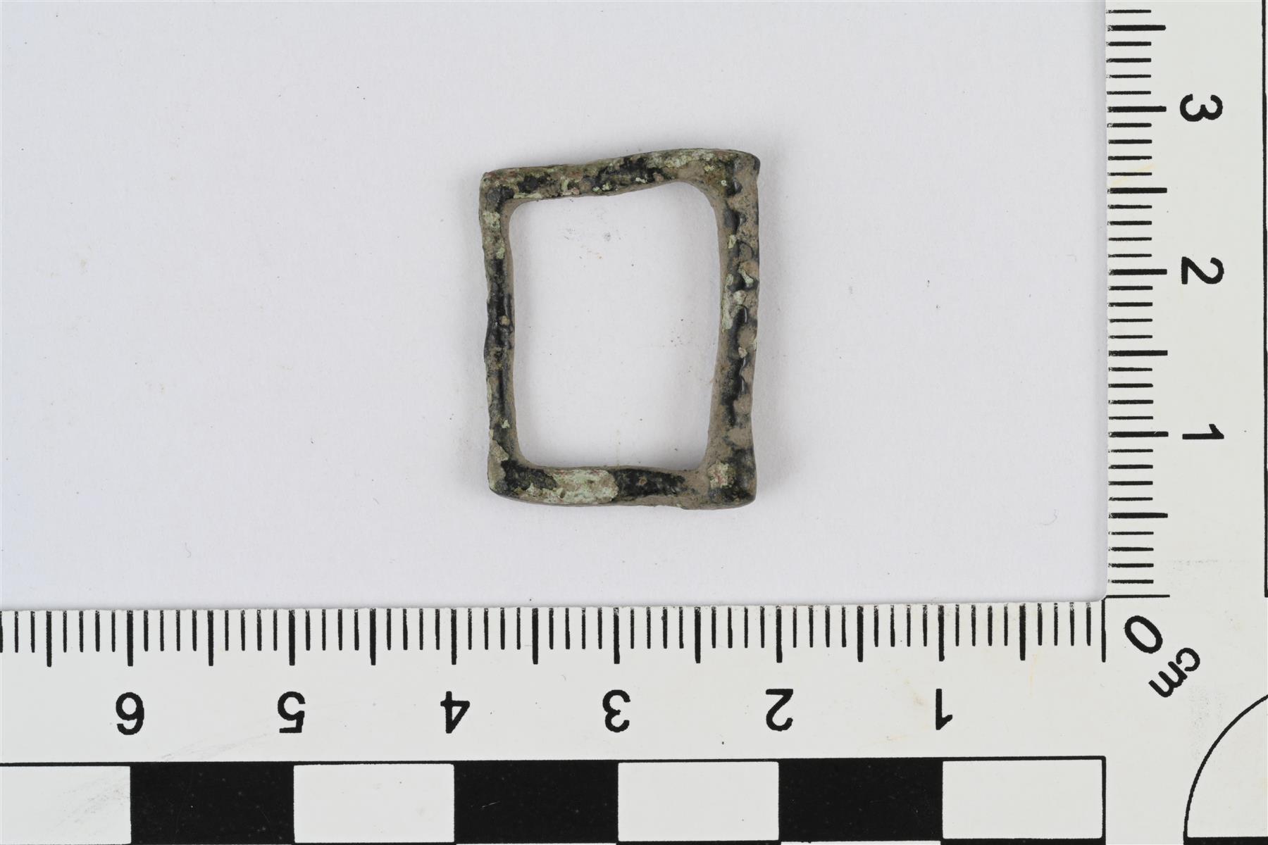| Pieni lähes suorakulmainen soljen kehä. Levenee hieman toista pitkää sivua kohti. Leveämmässä pitkässä sivussa koristeluna rivi pieniä pyöreitä kuoppia. | |