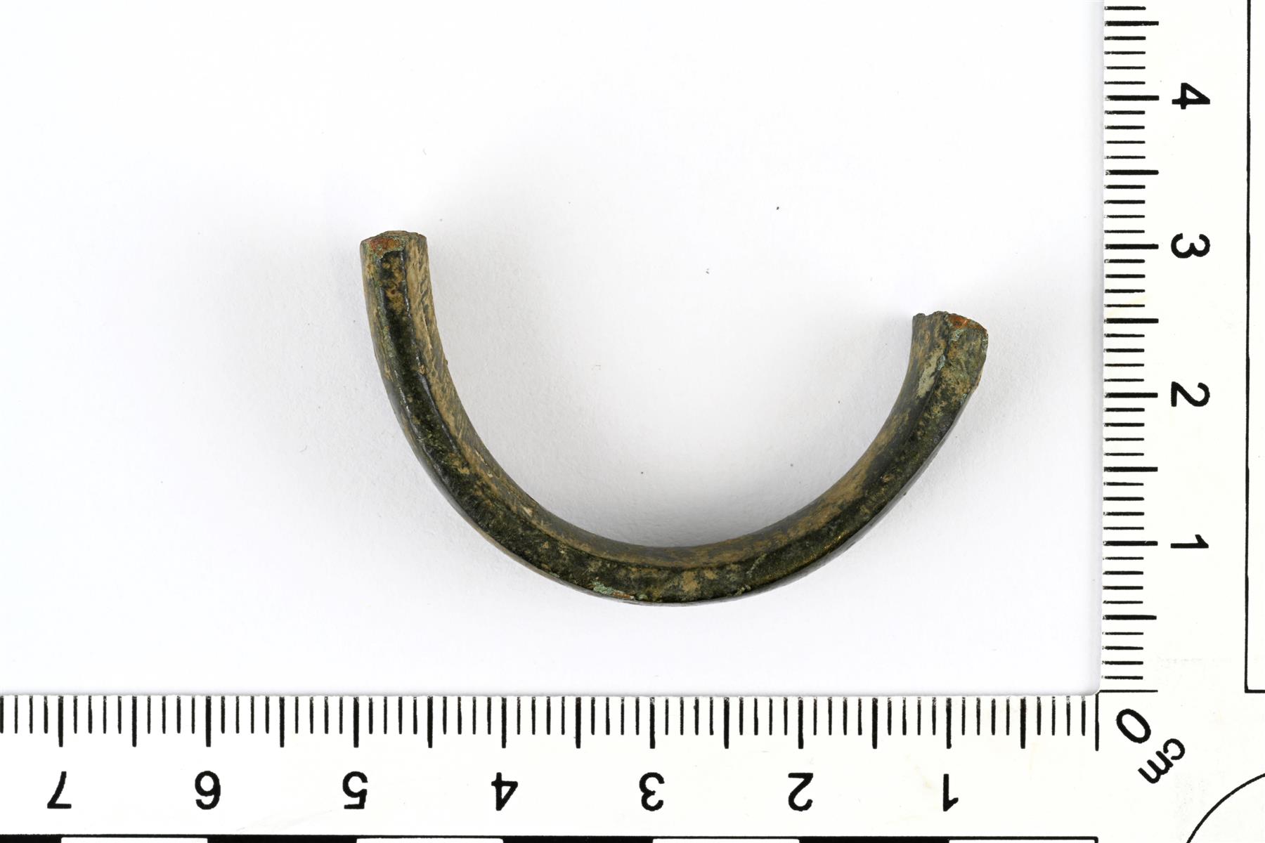 | Rannerengasta muistuttavan kupariseoskaaren katkelma. Levenee toista päätyä kohti. Murtumapinnat molemmissa päissä. Poikkileikkaus on molemmilta puolilta hieman kupera suorakaide. Ei koristelua. | |