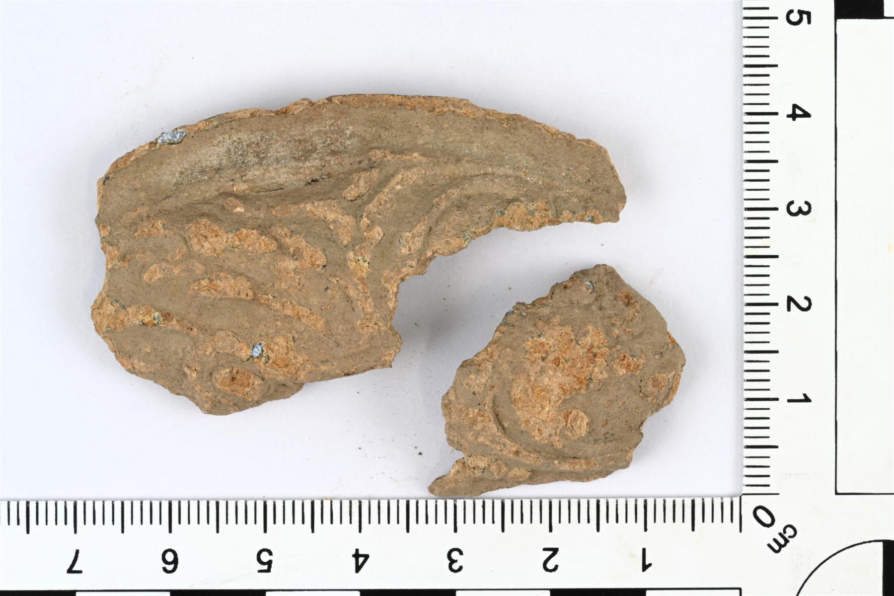 | Koverankuperan ja reliefikoristeisen esineen katkelmia. Todennäköisesti samasta esineestä kuin KM 44528: 2. | |
