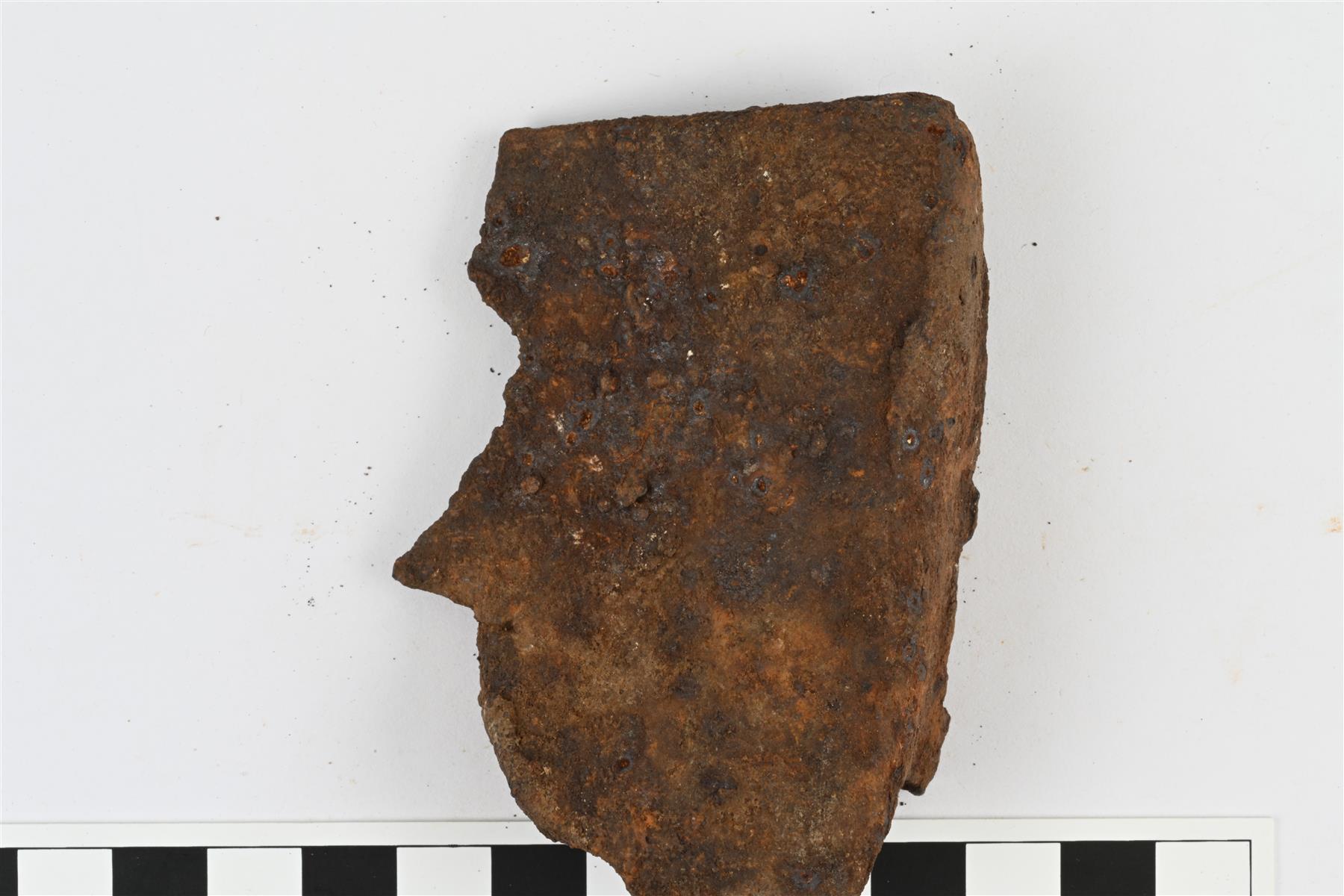 | Varsiputkellisen kirveensilmän toinen lape ja hamaran puolikas. Silmän muoto kolmiomainen. Ilmeisesti tarkoituksella rikottu. | |