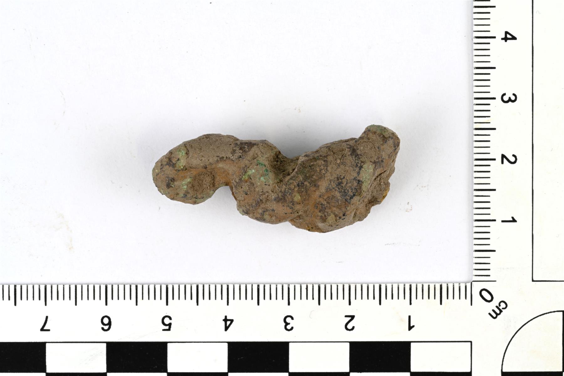 | Osittain sulaneen kaularenkaan katkelma. Tehty kupariseosvartaista kiertämällä. | |