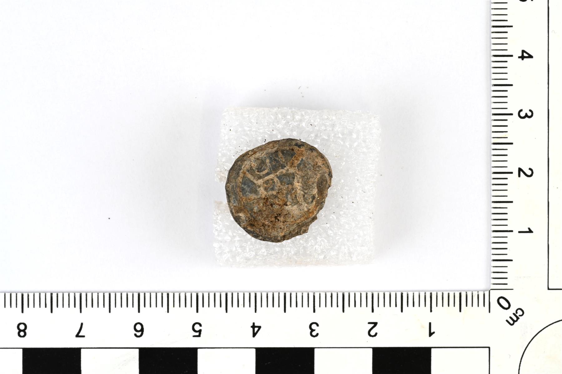 | Ovaali sinettileimasin. Melko huonokuntoinen, mutta pohjassa erottuu viivauurteilla tehtyä kuviointia. | |