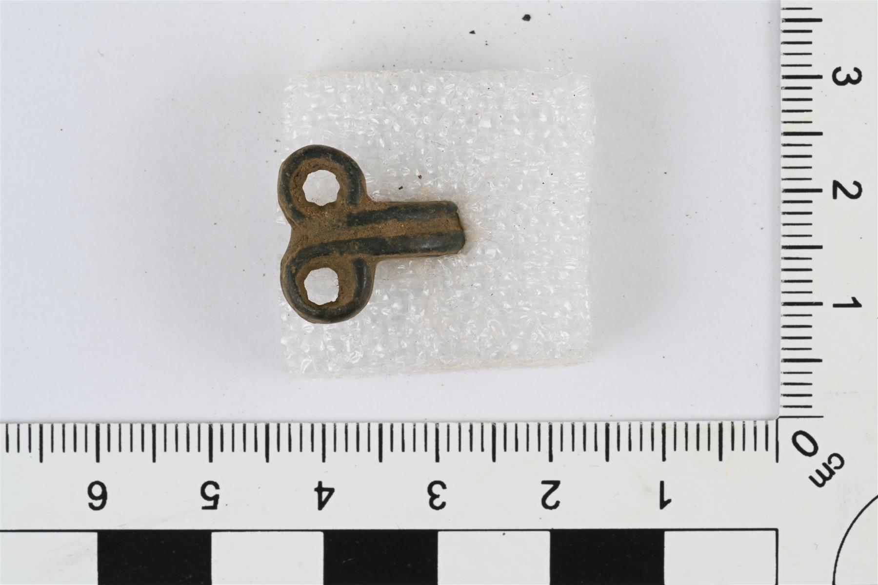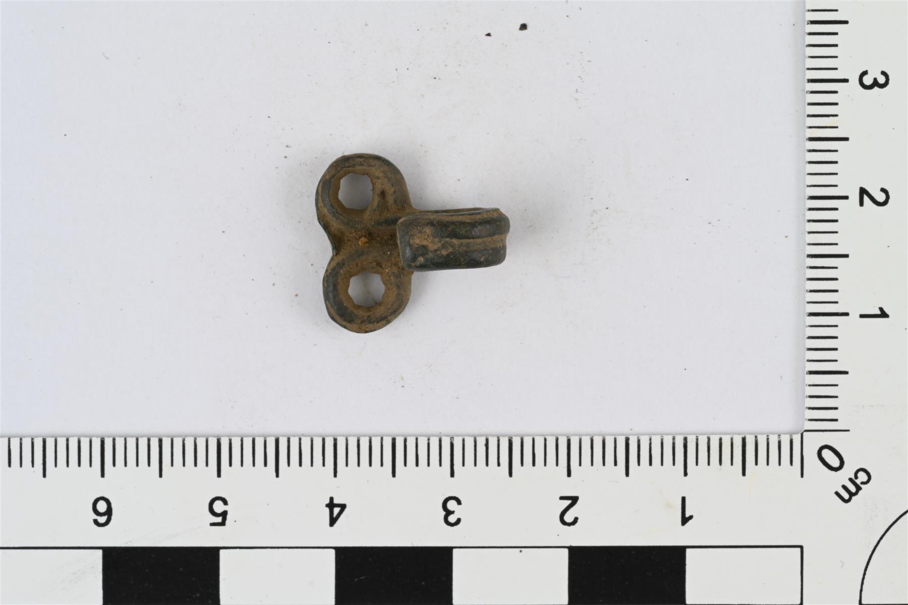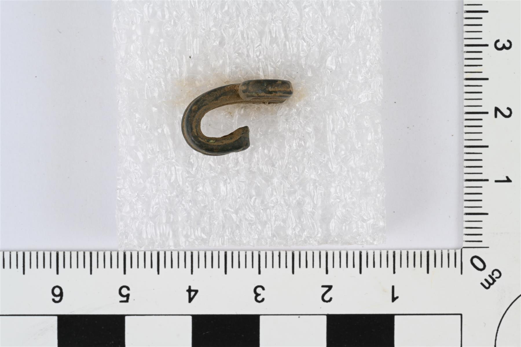 | Kupariseoslangasta tai ohuesta vartaasta taivutettu vaatehakanen. Varras taivutettu kaksin kerroin, päät kierretty lenkeiksi ja keskiosa taivutettu koukuksi. | |