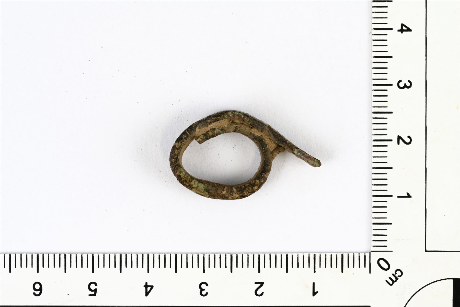 | Mahdollinen hevosenkenkäsoljen neulan katkelma. Kierretty lenkiksi. Poikkileikkaukseltaan suorakaide. | |