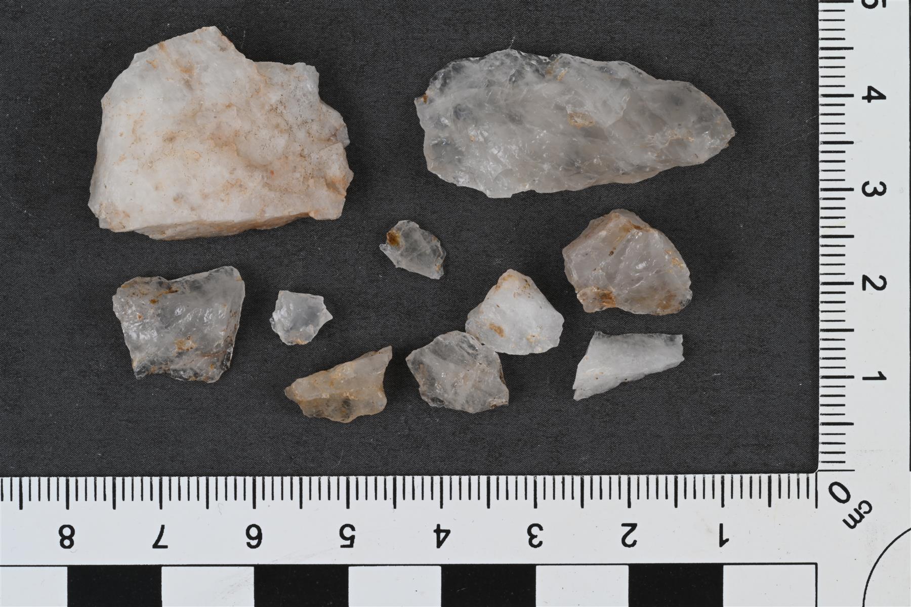 | Kvartsi-iskoksia ja pieniä kvartsin paloja. | |