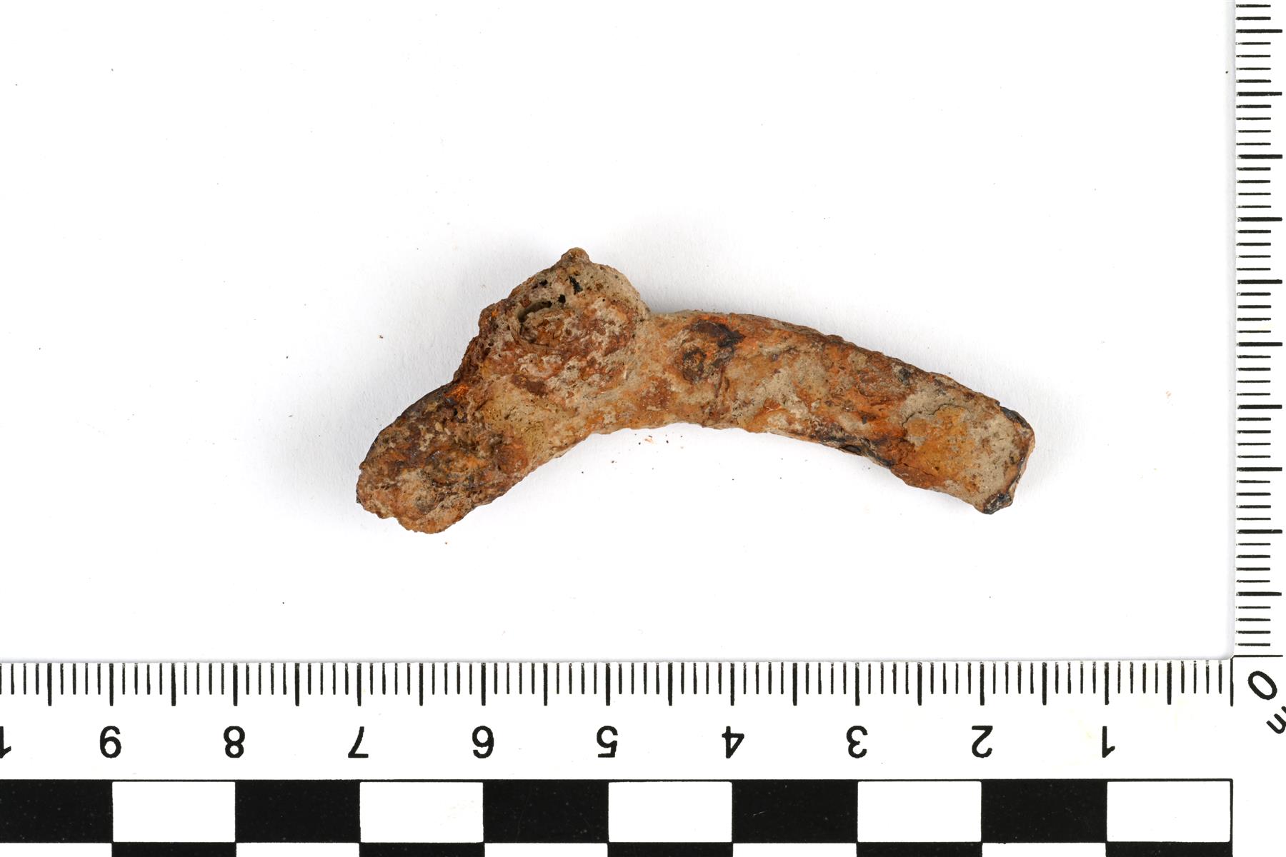 Kaareva rautaesineen katkelma. Mahdollisesti samasta esineestä kuin : 8. | |