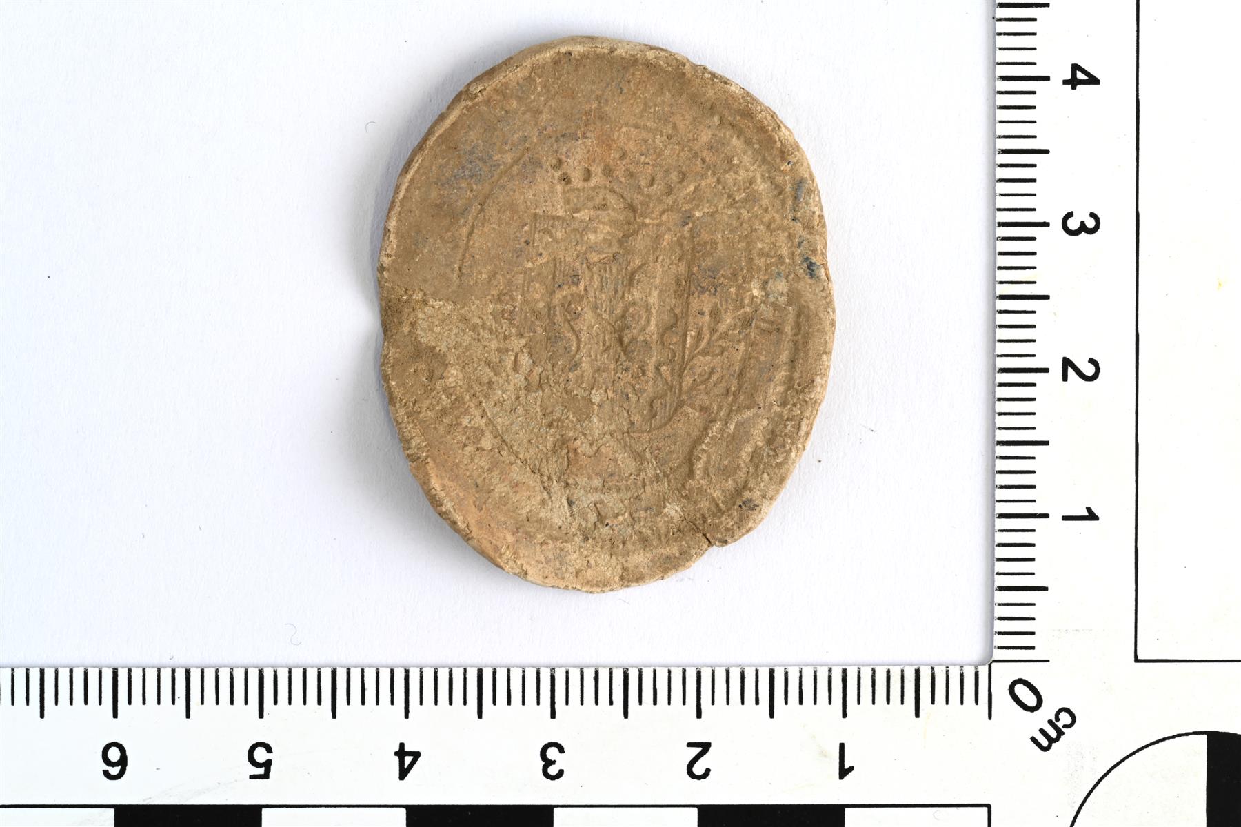 | Ovaali lyijysinetti. Yhdellä puolella on kruunulla varustettu Vaasa-suvun vaakuna. Vastapuoli on tyhjä. | |