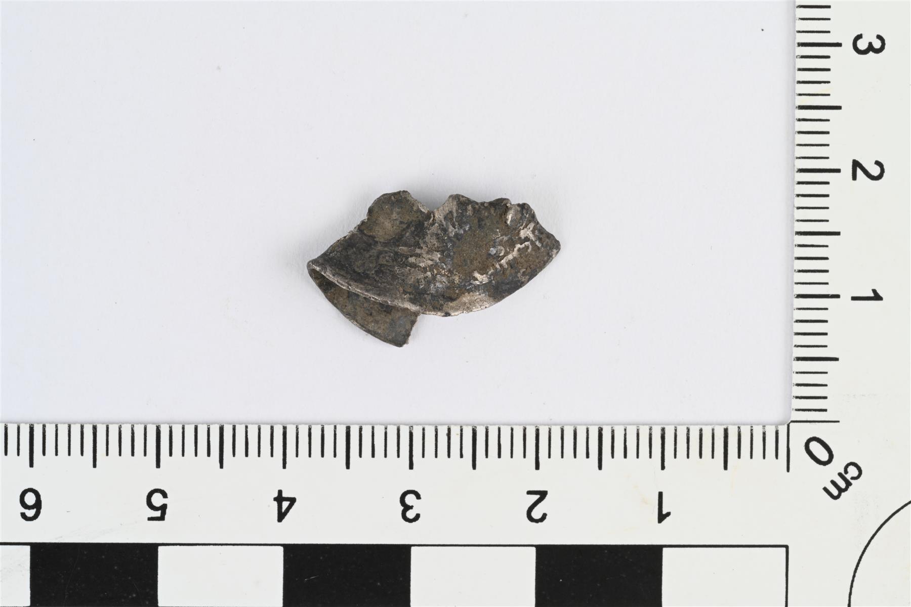 | Samanidi-dirhemin katkelma, n. 900-950. Heidi Martiskainen 29.11.2023 KM45967:1_2_dirhemi |