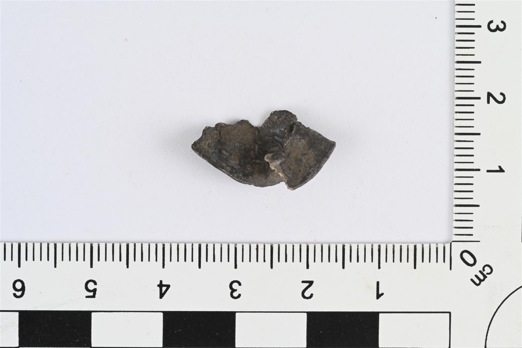 | Samanidi-dirhemin (tai jäljitelmän) katkelma, n. 900-950. Taittunut, palanut. | |