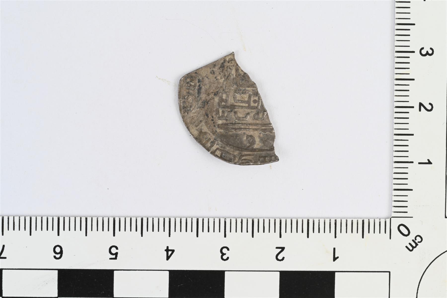 | Dirhemin jäljitelmä, mahdollisesti Suomessa valmistettu, 900-luku. Katkelma. | |