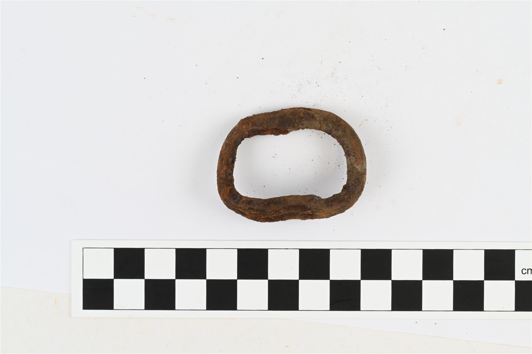 | Rautainen lenkki, jonka yksi sivu levenee reiälliseksi soikioksi. Soikion reiän suunta suorassa kulmassa itse lenkin reiän suuntaan nähden. | |