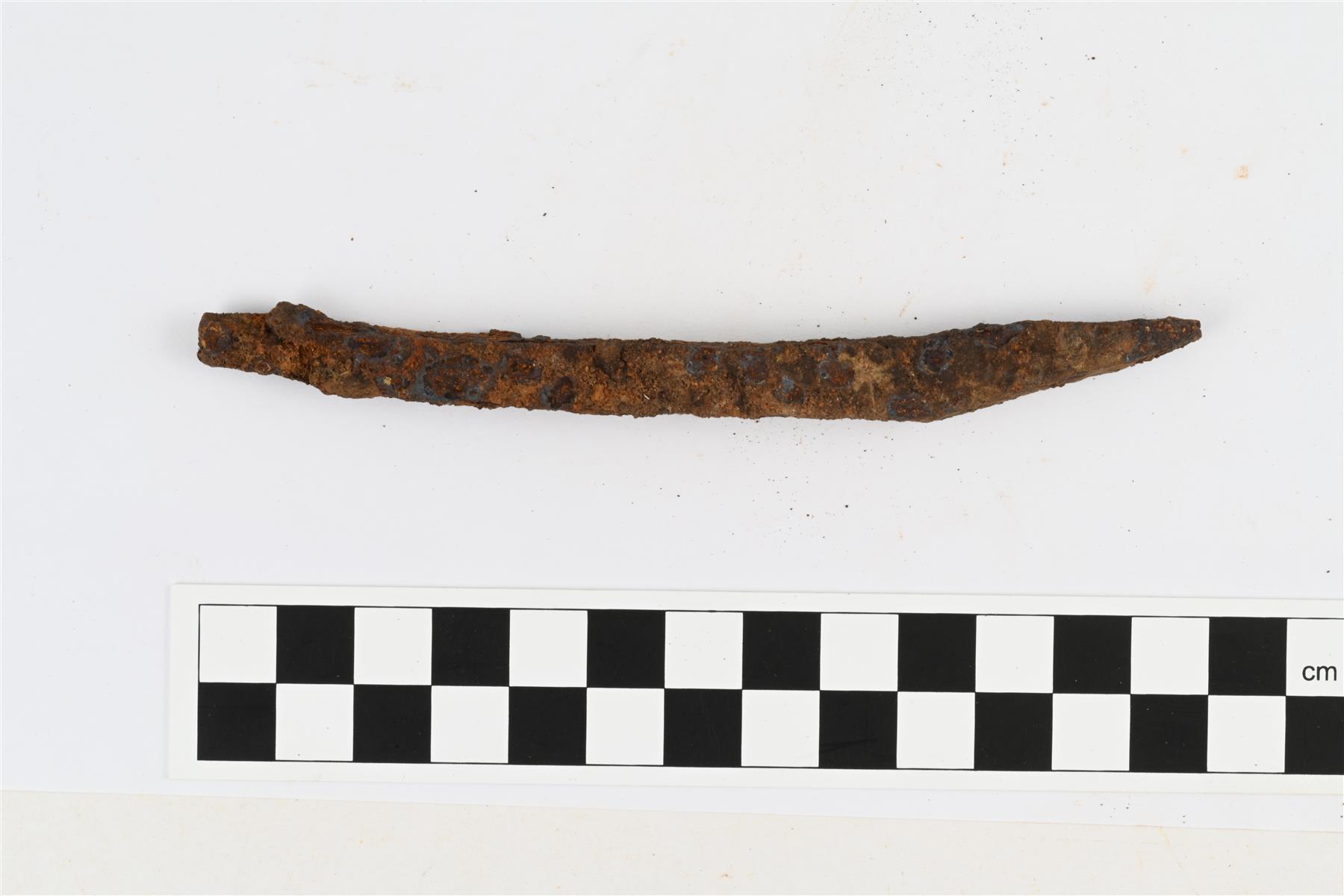| Piikkimäinen melko iso rautaesine. Suorakaiteenmuotoinen poikkileikkaus. Toisessa päässä taitteellinen kärki. Toisessa päässä murtopintaa. | |