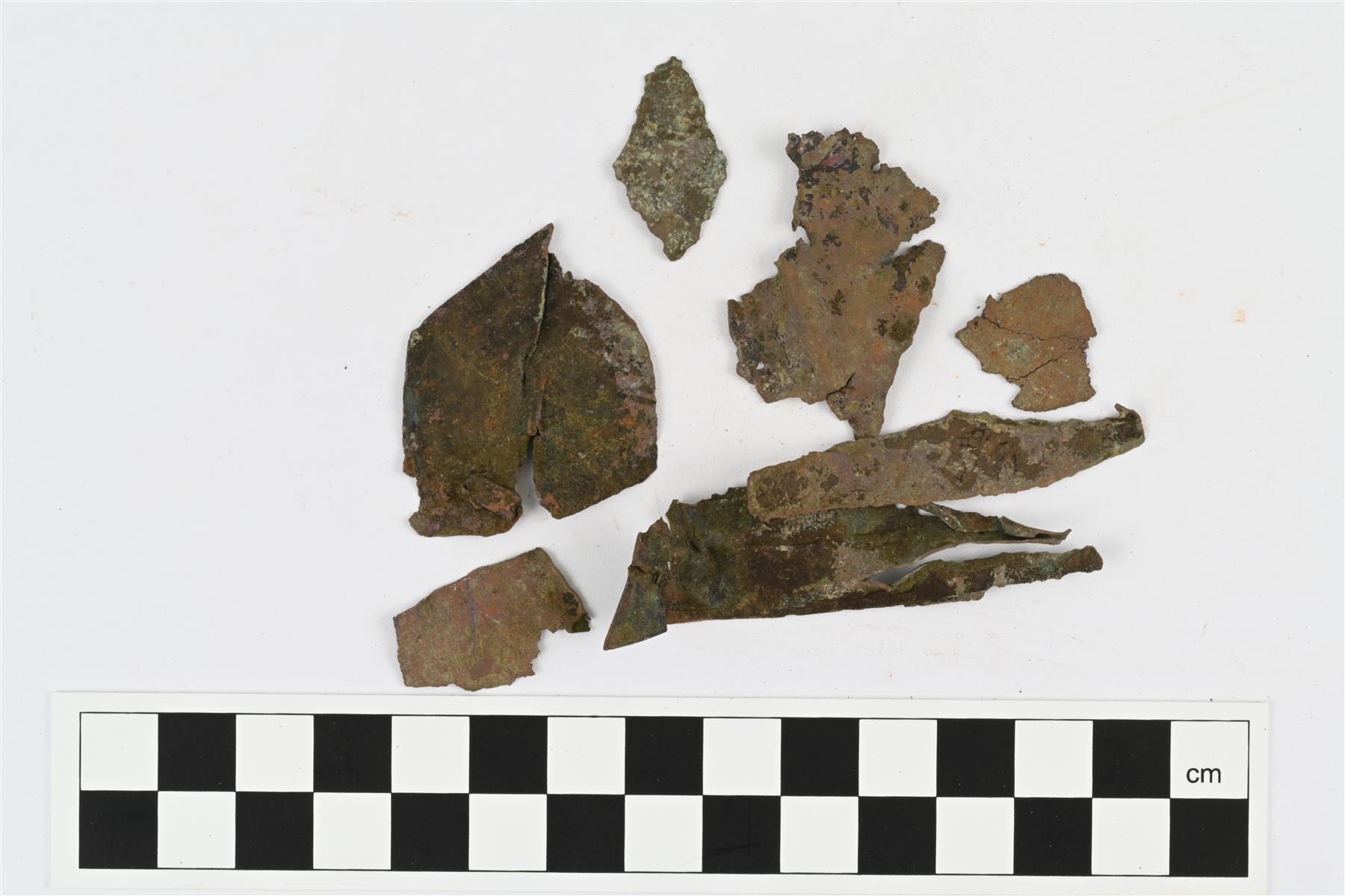 | Kuparipellistä karkeasti leikattuja vaihtelevan ja epäsäännöllisen muotoisia kappaleita. | |